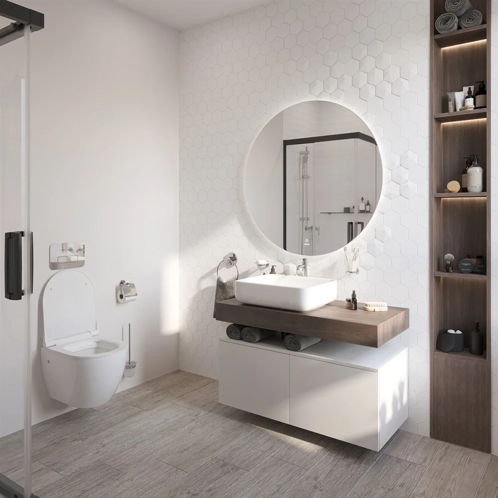 Столешница STWORKI Ольборг 100 дуб карпентер, без отверстий, 2 тумбы 50, с раковиной STWORKI Soul 1 489291