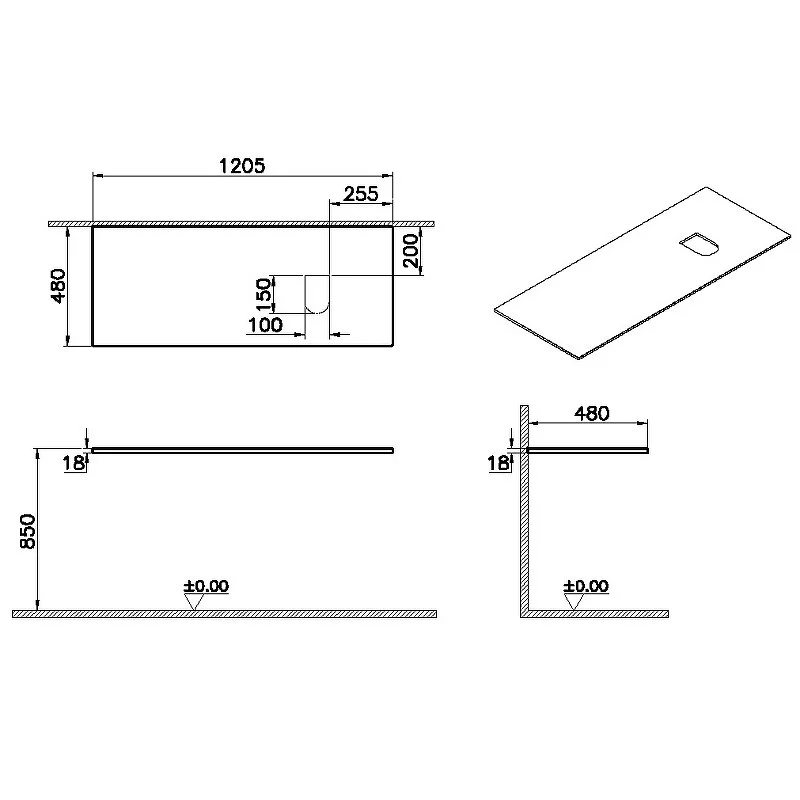 Столешница Vitra Origin 120 см 65929 правая, дуб