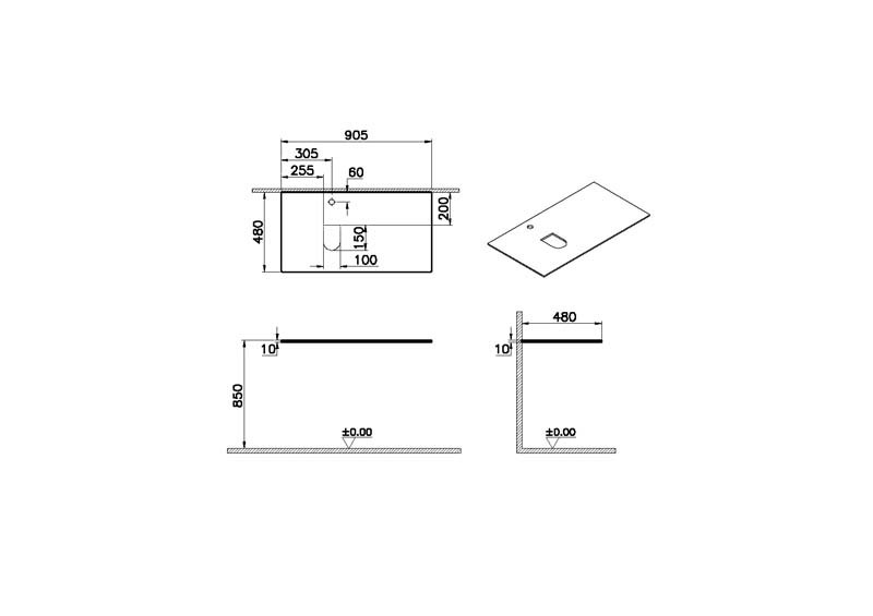 Столешница Vitra Origin 90 см 65713 стеклянная, левая, белая