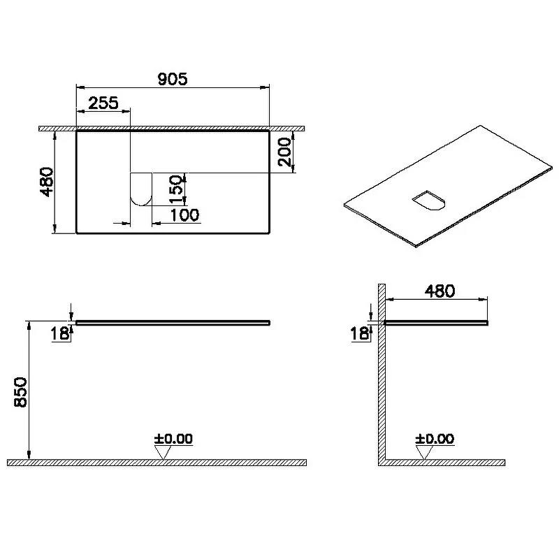 Столешница Vitra Origin 90 см 65858 левая, темный вяз