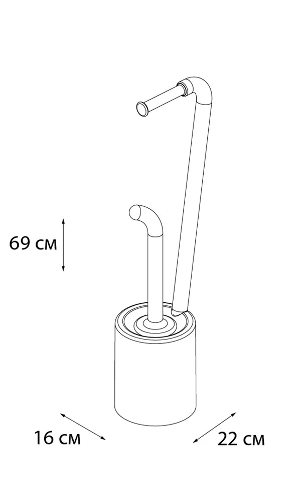 Напольная стойка для унитаза с держателем туалетной бумаги и ёршиком. Белый пластик с оранжевыми элементами.