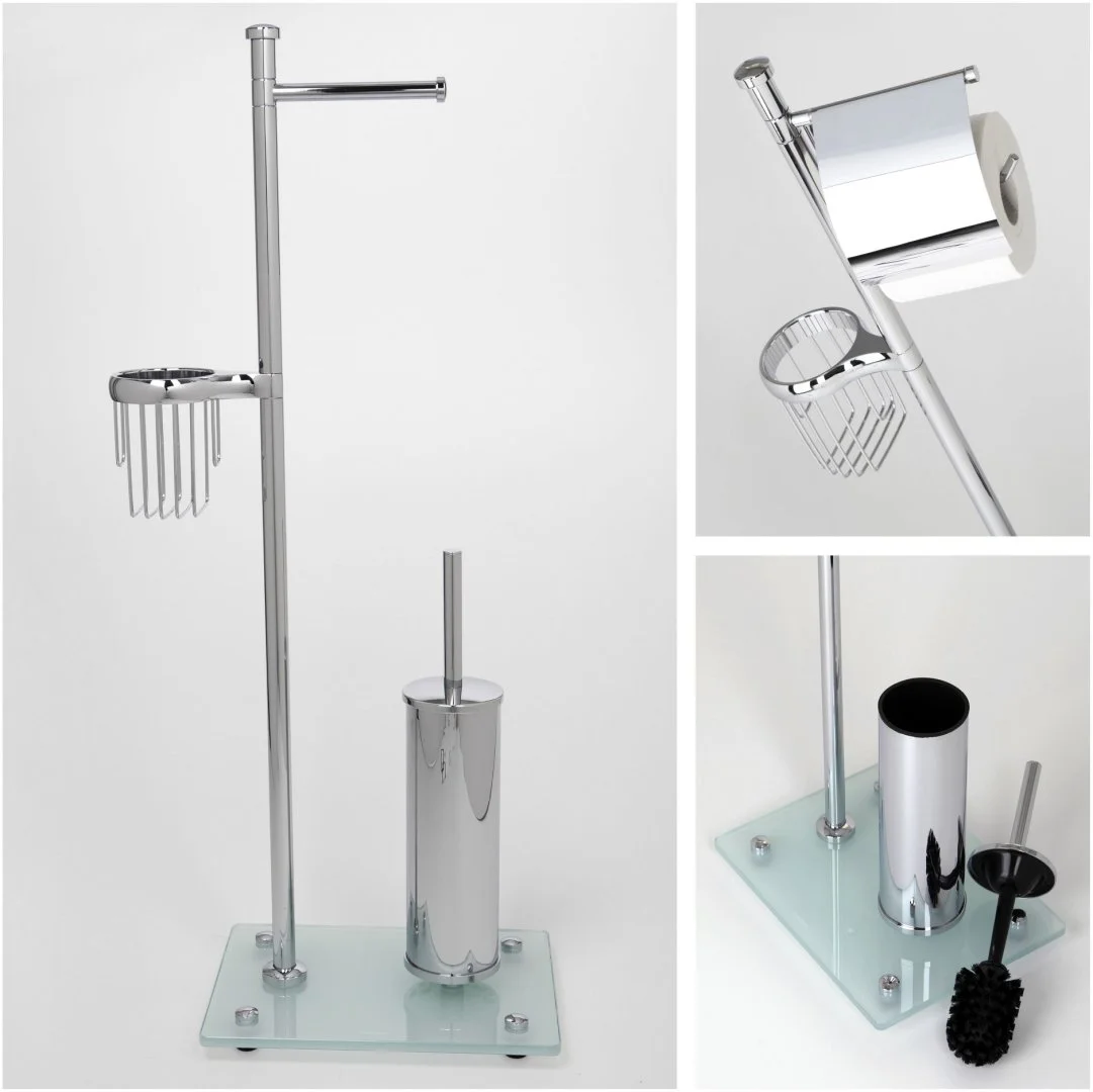 Комплектация на выбор. В комплект входят два держателя туалетной бумаги: с крышкой и без крышки. При монтаже необходимо выбрать одно из изделий. Вы сами формируете свою напольную стойку так, как Вам будет удобно.