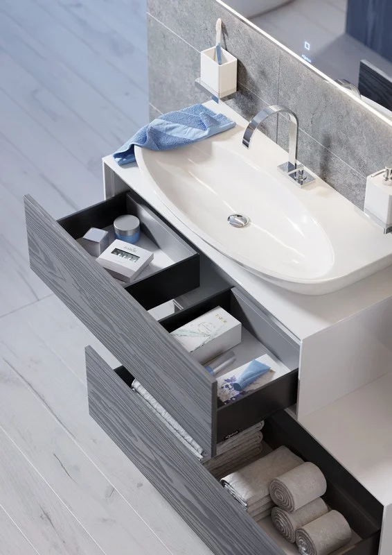 Дополнительная подвесная тумба с одним выдвижным ящиком в цвете белый глянец.