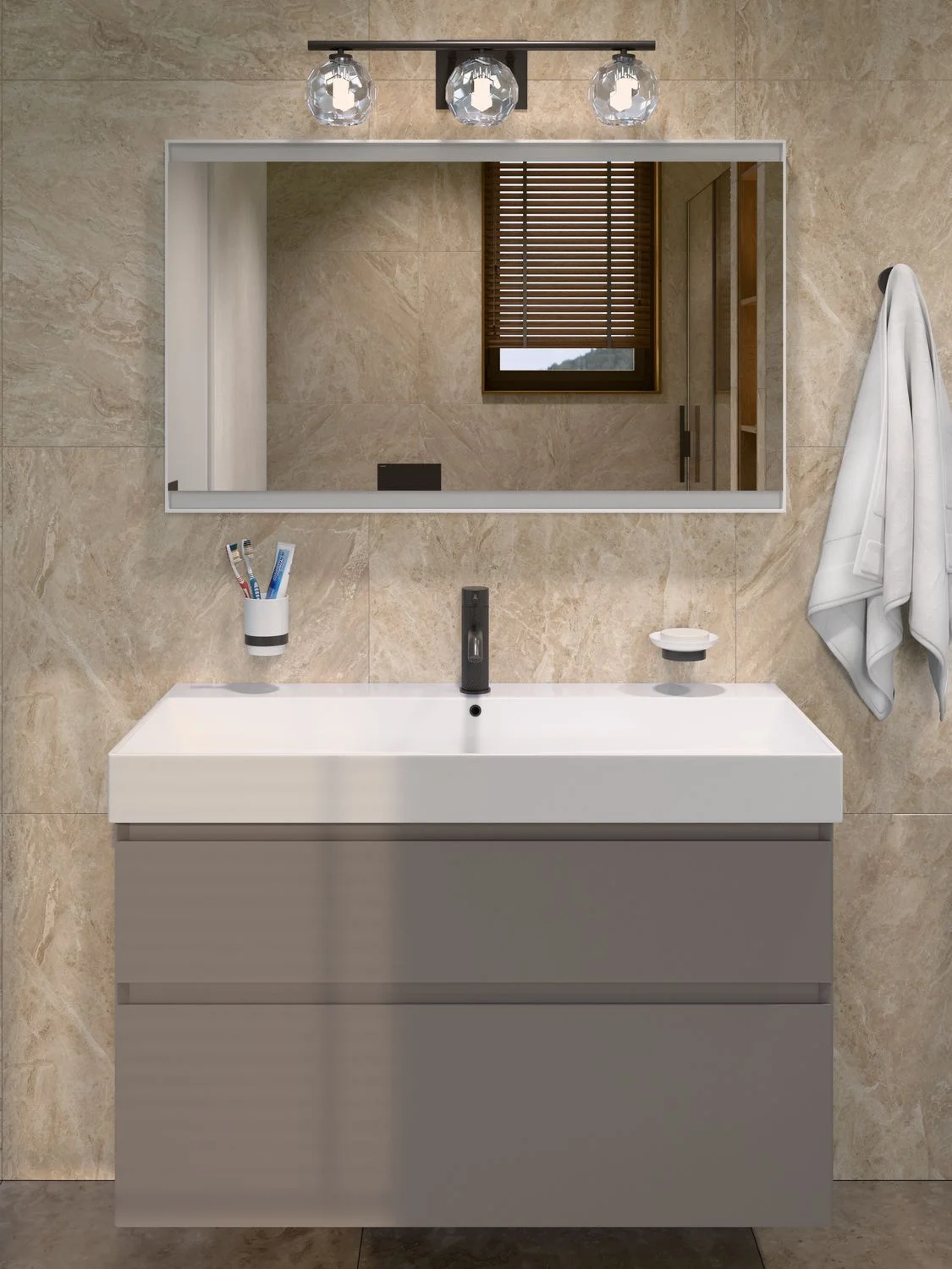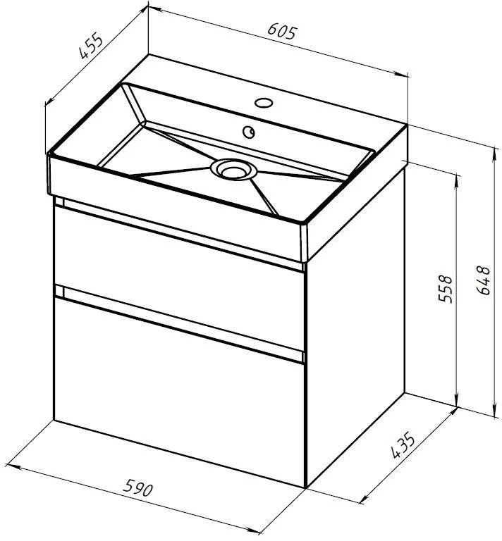 Тумба комплектуется керамической раковиной SLIM SYNERGY 60. Раковина имеет прямоугольную форму, глубокую чашу и тонкий высокий бортик. Доступна в белом или черном цвете.