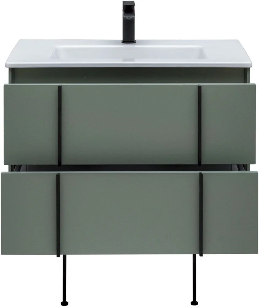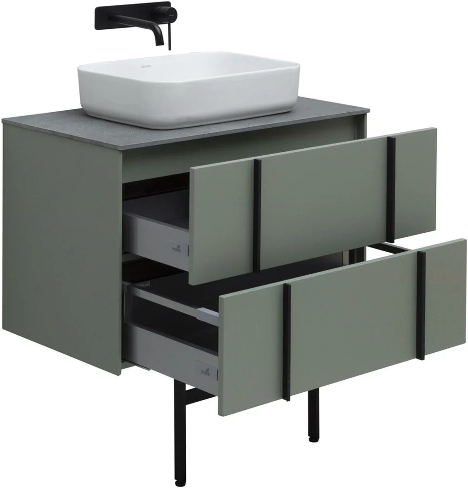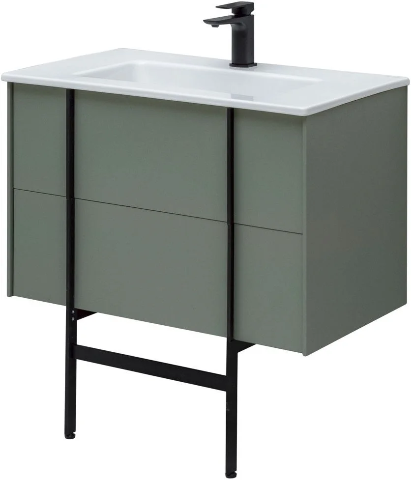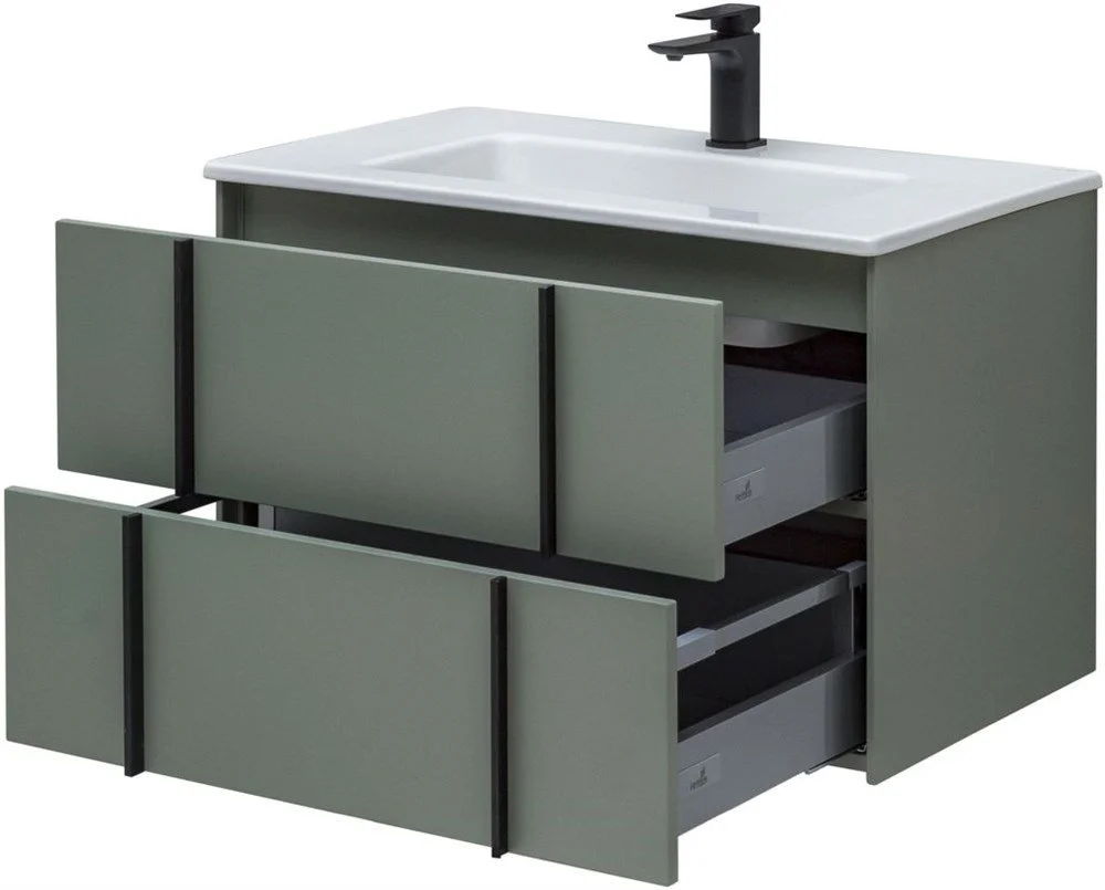 Изюминкой коллекции являются стильные и оригинальные металлические ручки, которые образуют единую линию с ножками тумбы и пенала. Ручки, опоры и зеркала коллекции REALITY выполнены из металла в цветах: черный браш или латунь браш.