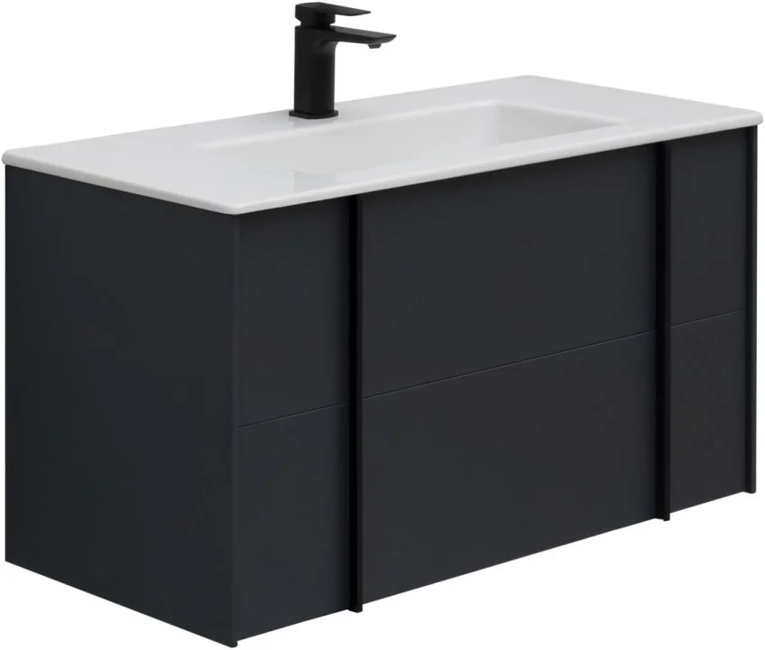 Изюминкой коллекции являются стильные и оригинальные металлические ручки, которые образуют единую линию с ножками тумбы и пенала. Ручки, опоры и зеркала коллекции REALITY выполнены из металла в цветах: черный браш или латунь браш.