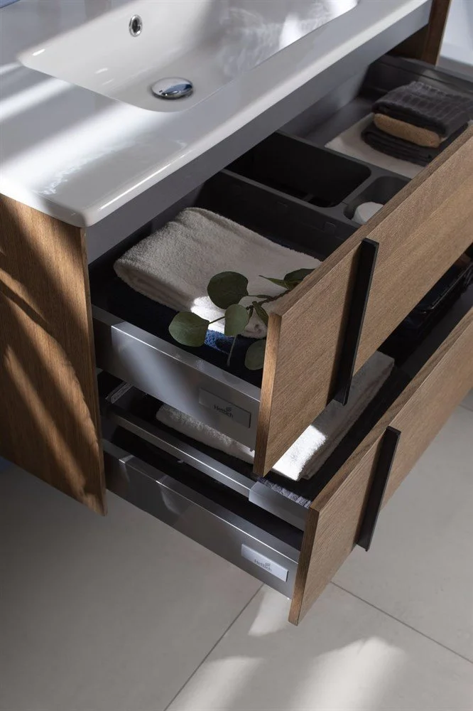Разнообразие вариантов для хранения: система органайзеров для тумбы, выдвижные ящики,
