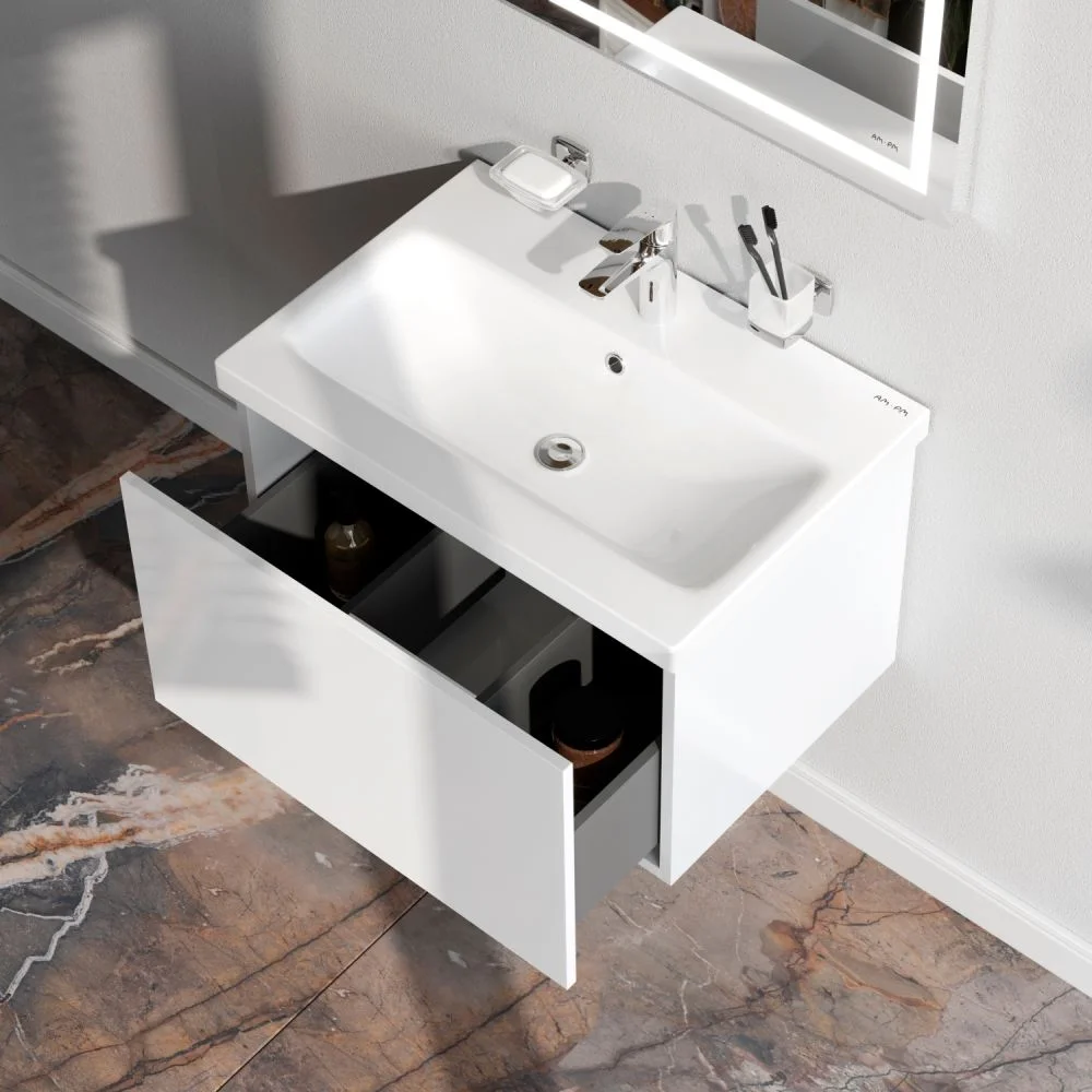 Хотите выделиться при ограниченном бюджете? Трендовый дизайн мебели для ванной комнаты Gem не уступает комплектам по гораздо более высокой цене.