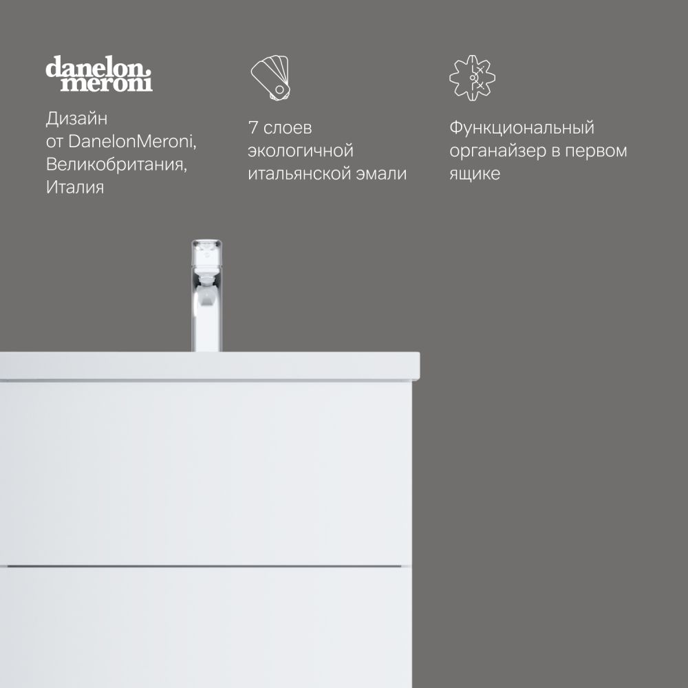 Хотите выделиться при ограниченном бюджете? Трендовый дизайн мебели для ванной комнаты Gem не уступает комплектам по гораздо более высокой цене.