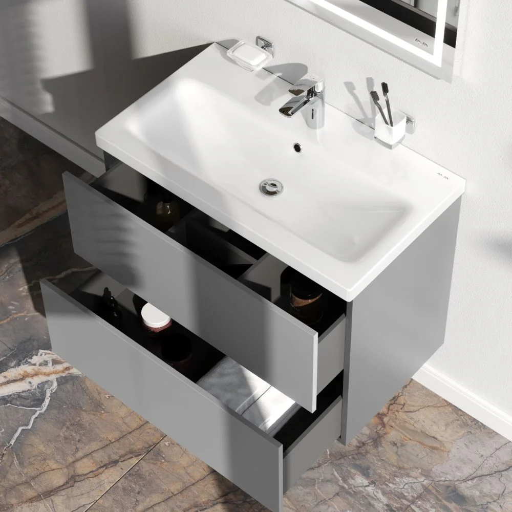 Подвесная мебель для ванной Am.Pm GEM идеально подойдет тем кто предпочитает минимализм в интерьере и выбирает абсолютный комфорт. Современный европейский дизайн от DanelonMeroni (Великобритания/Италия). Самая компактная и функциональная раковина на рынке: проекция всего 42 см при максимальной глубине чаши!