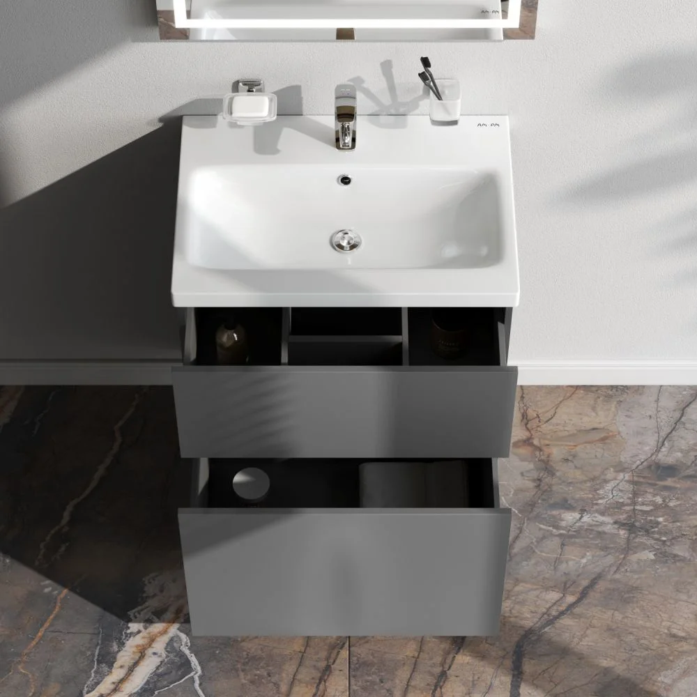 Напольная мебель для ванной Am.Pm GEM идеально подойдет тем кто предпочитает минимализм в интерьере и выбирает абсолютный комфорт. Современный европейский дизайн от DanelonMeroni (Великобритания/Италия). Самая компактная и функциональная раковина на рынке: проекция всего 42 см при максимальной глубине чаши!
