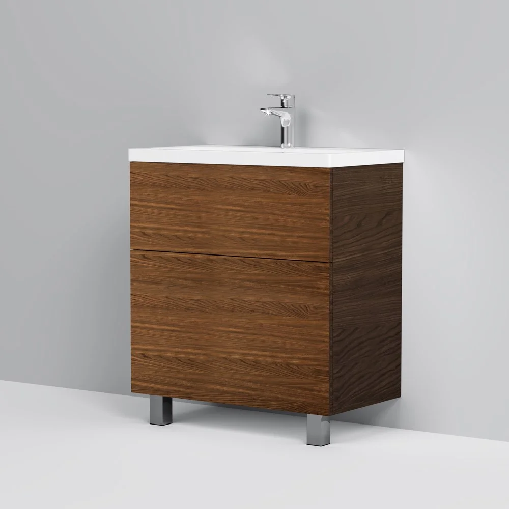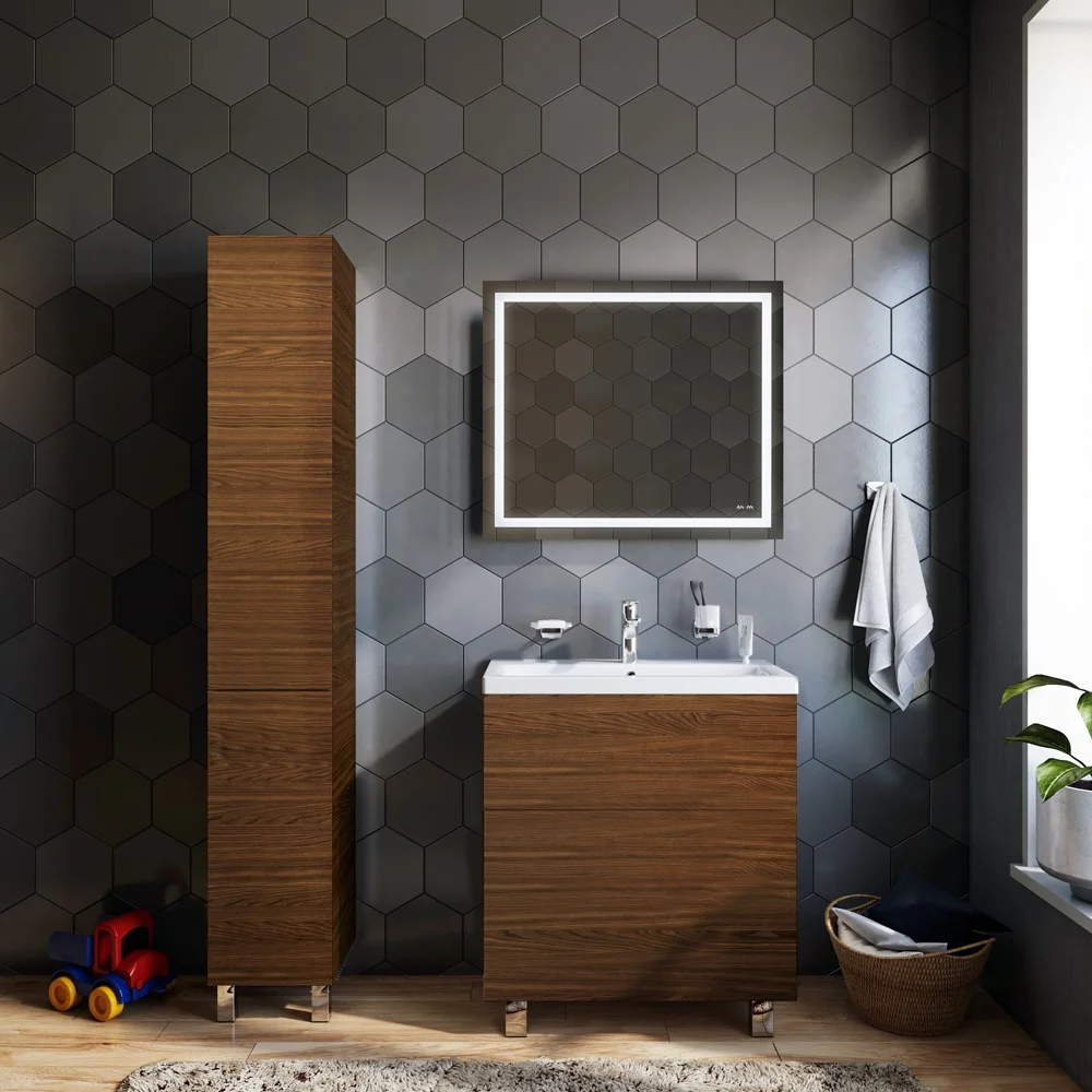 Хотите выделиться при ограниченном бюджете? Трендовый дизайн мебели для ванной комнаты Gem не уступает комплектам по гораздо более высокой цене.