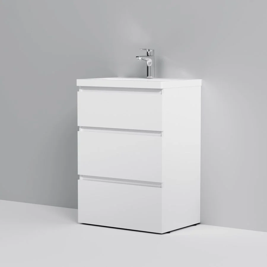 Повышенная влагостойкость мебели: окрашенные в 7 слоев поверхности мебели в цвете белый глянец влагостойкая плита мебели в цвете светлый дуб.