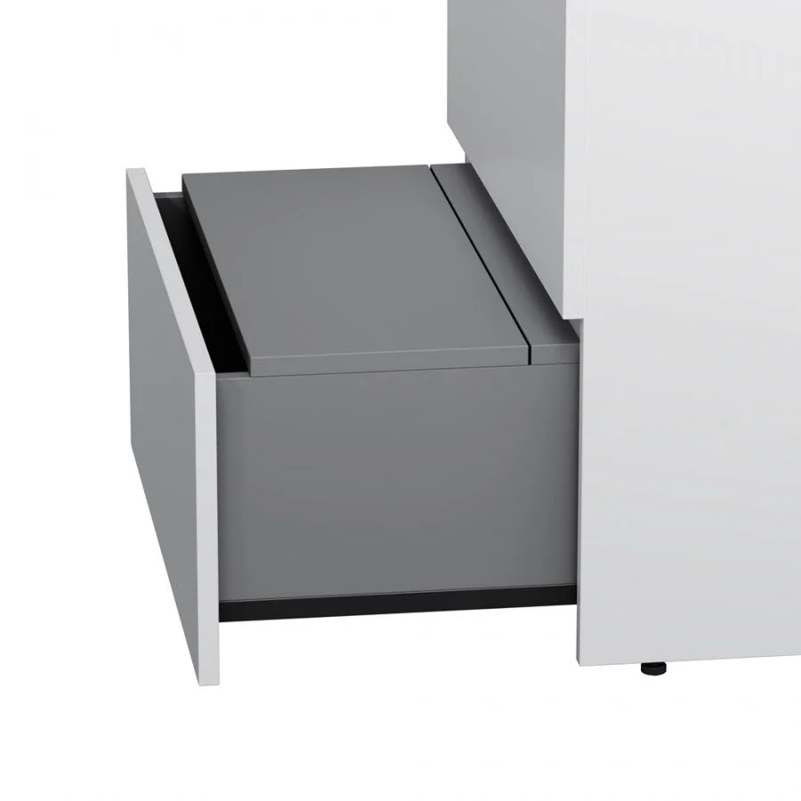 Уникальный нижний ящик базы может быть использован как: выдвижная подставка для детей для удобного мытья рук (выдерживает нагрузку до 60 кг) дополнительная ниша для хранения (экономия пространства ванной комнаты). Ящики с антискользящим покрытием цвета антрацит – европейский стандарт.