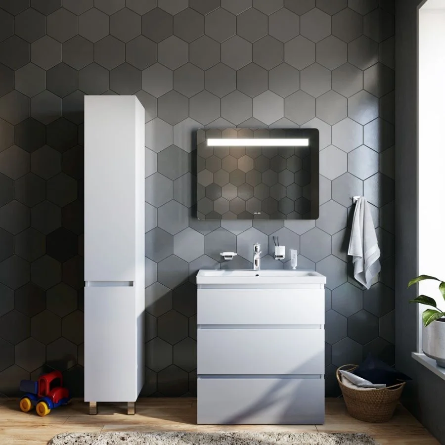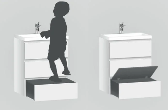 Современный европейский дизайн от DanelonMeroni (Великобритания/Италия). Уникальный нижний ящик базы может быть использован как: выдвижная подставка для детей для удобного мытья рук (выдерживает нагрузку до 60 кг) дополнительная ниша для хранения (экономия пространства ванной комнаты).