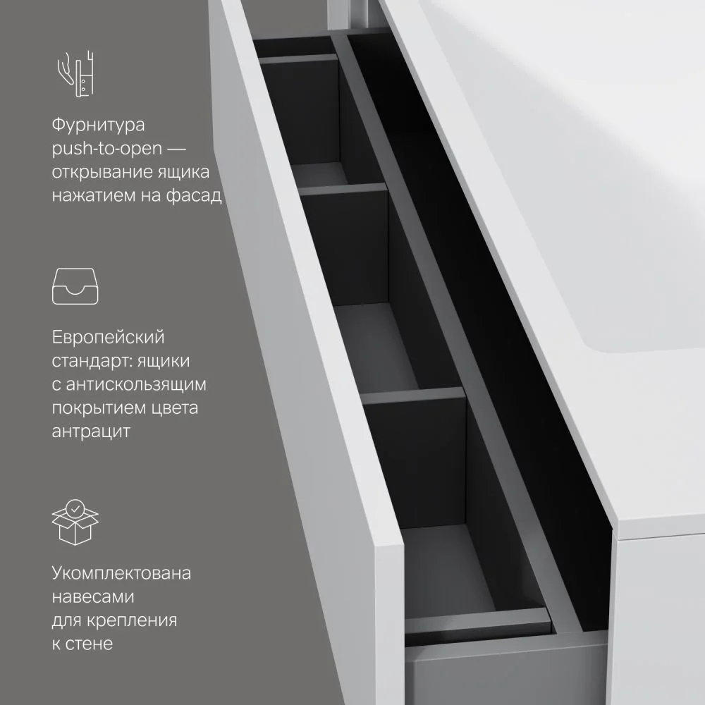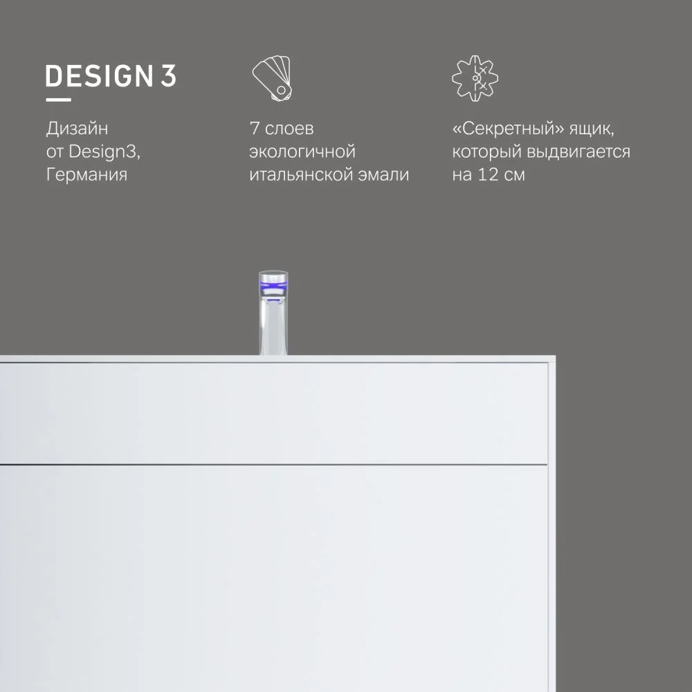 Инновационный подход к хранению: мы разработали дополнительный ящик который выдвигается на 12 см и обеспечивает быстрый доступ к самым необходимым вещам