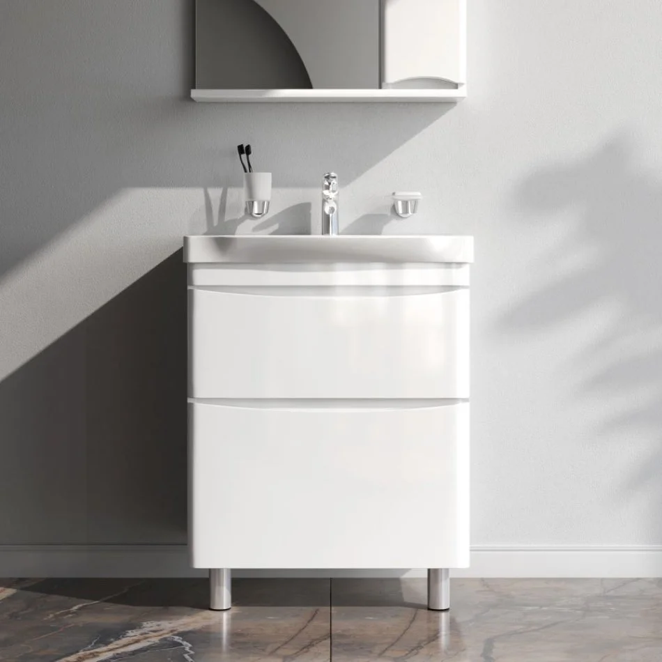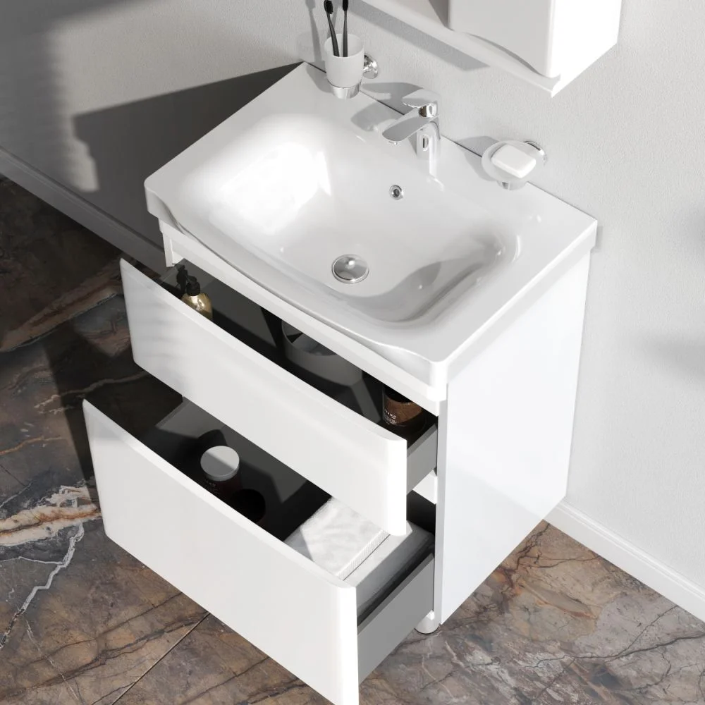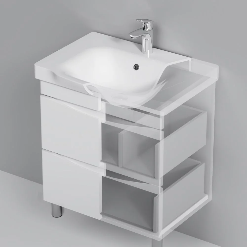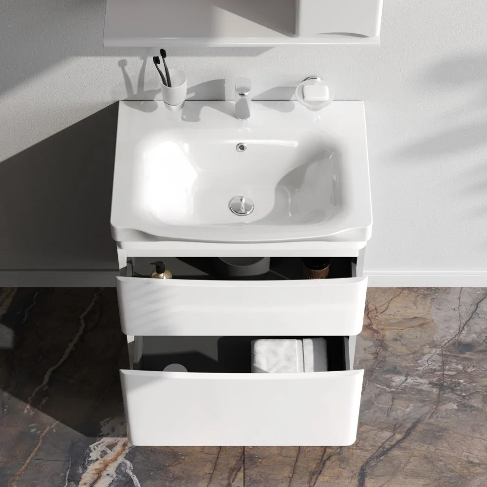 Утонченность в деталях: удобные интегрированные в фасад ручки идеально повторяют изгиб выступа раковины