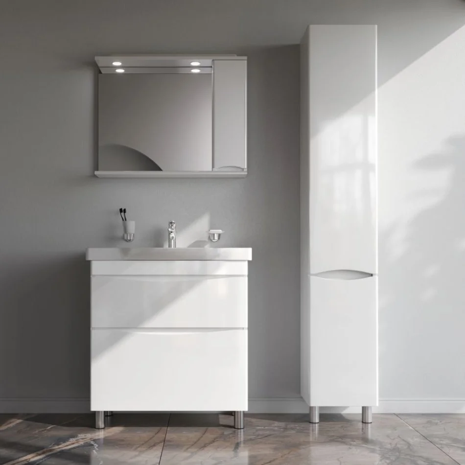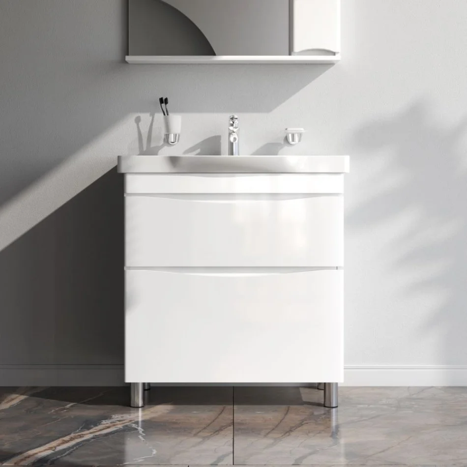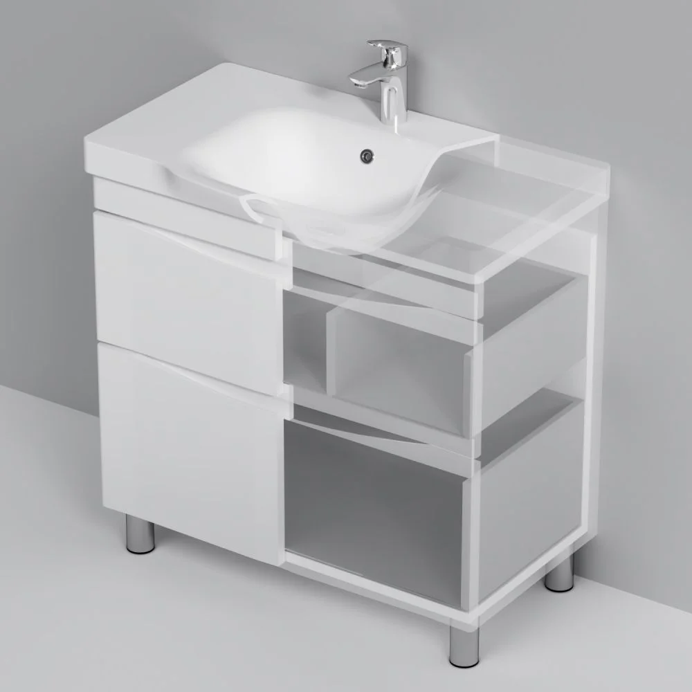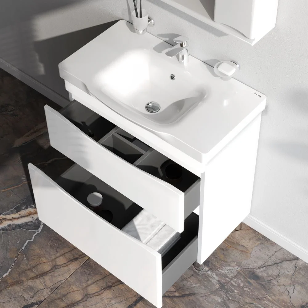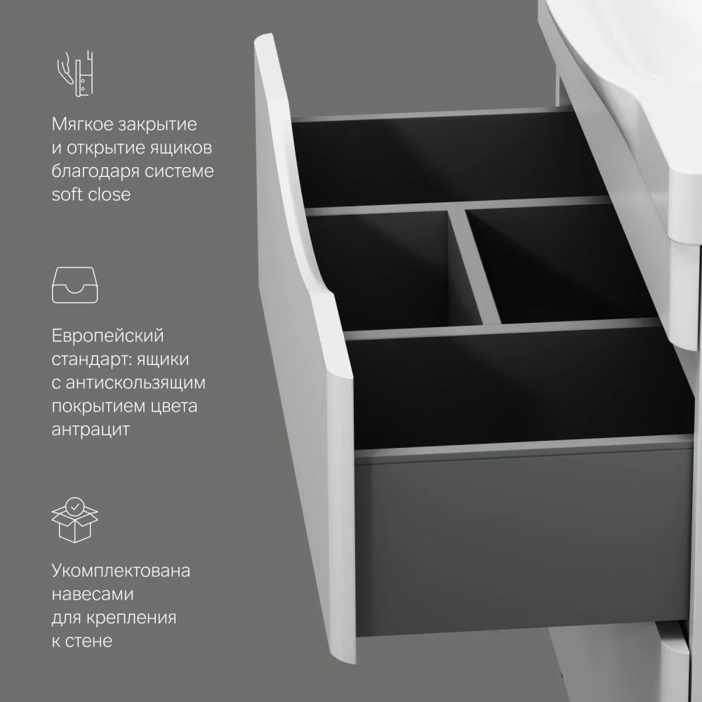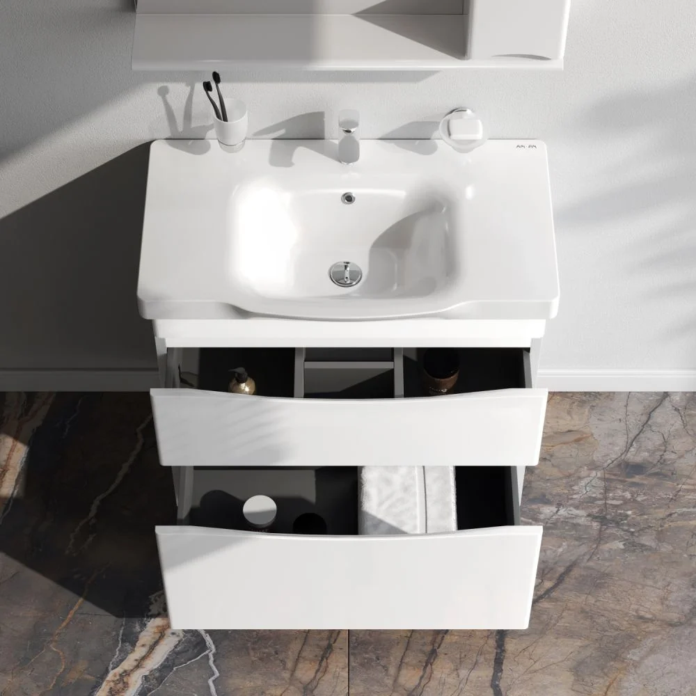 Утонченность в деталях: удобные интегрированные в фасад ручки идеально повторяют изгиб выступа раковины
