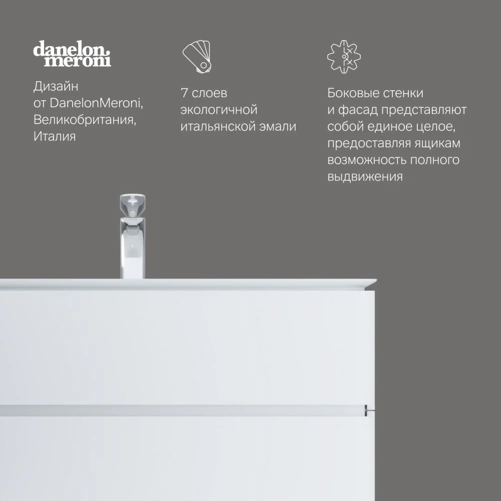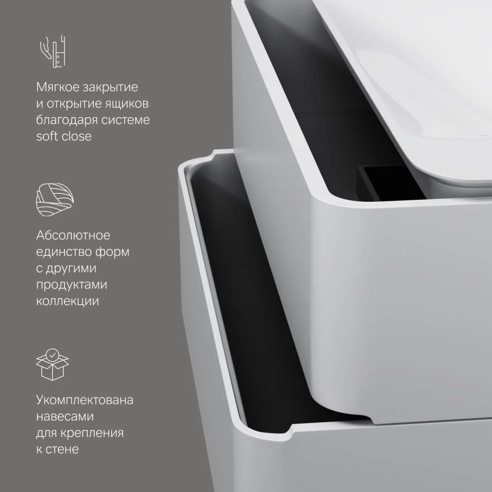 Эксклюзивное дизайнерское решение: боковые стенки и фасад представляют собой единое целое предоставляя ящикам возможность полного выдвижения.
