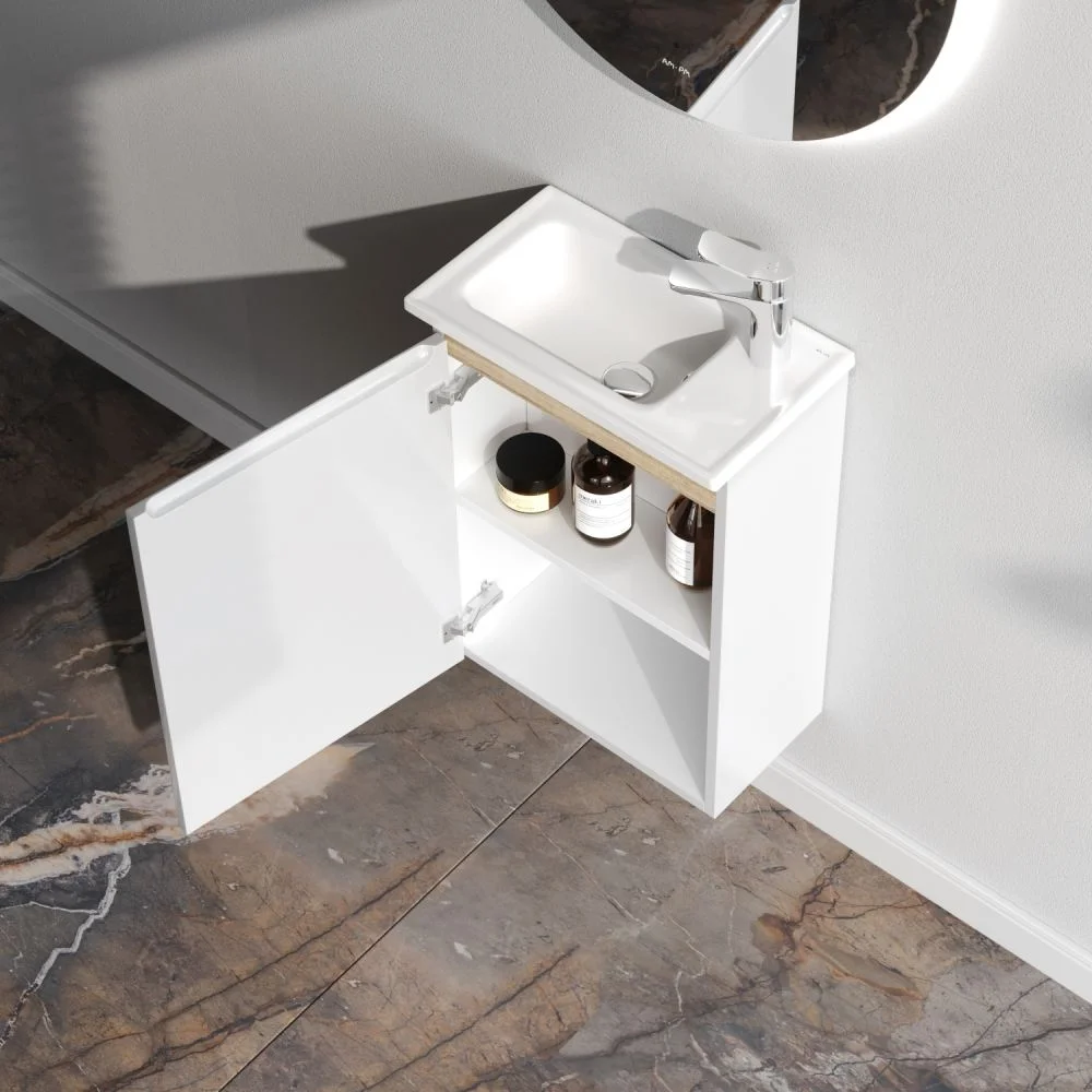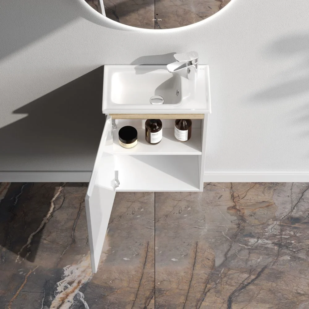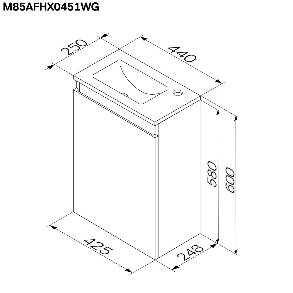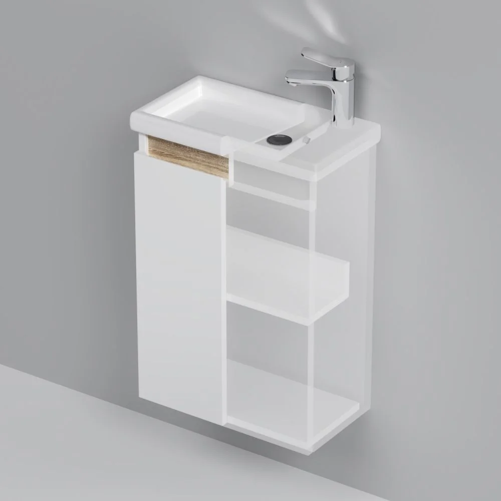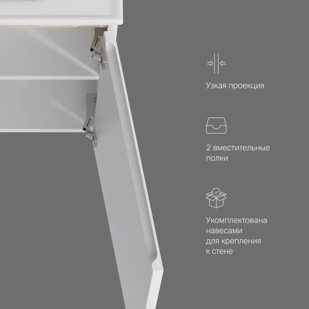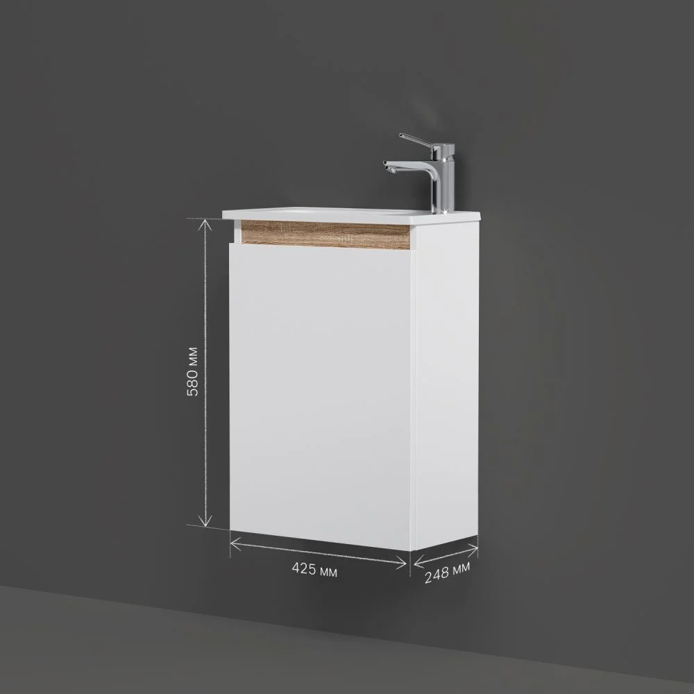 цвете Anthracite и имеет противоскользящее покрытие.? Встроенная керамическая раковина белоснежного цвета оснащена специальным бортиком для защиты от пролива воды за мебель.