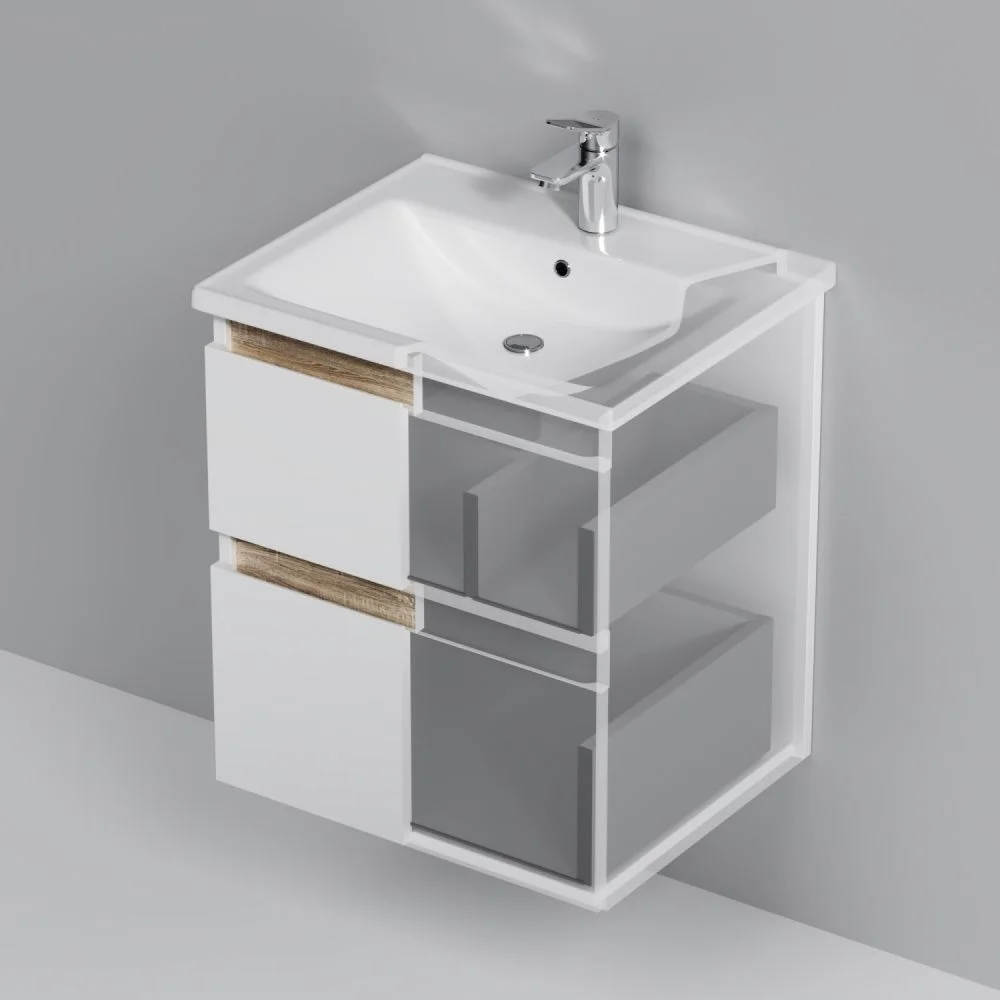 цвете Anthracite и имеет противоскользящее покрытие.? Встроенная керамическая раковина белоснежного цвета оснащена специальным бортиком для защиты от пролива воды за мебель.