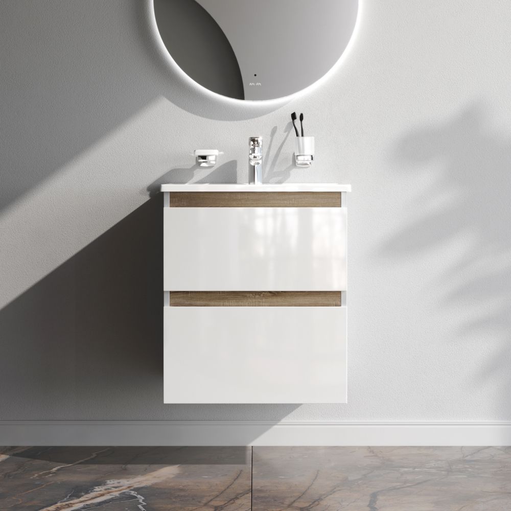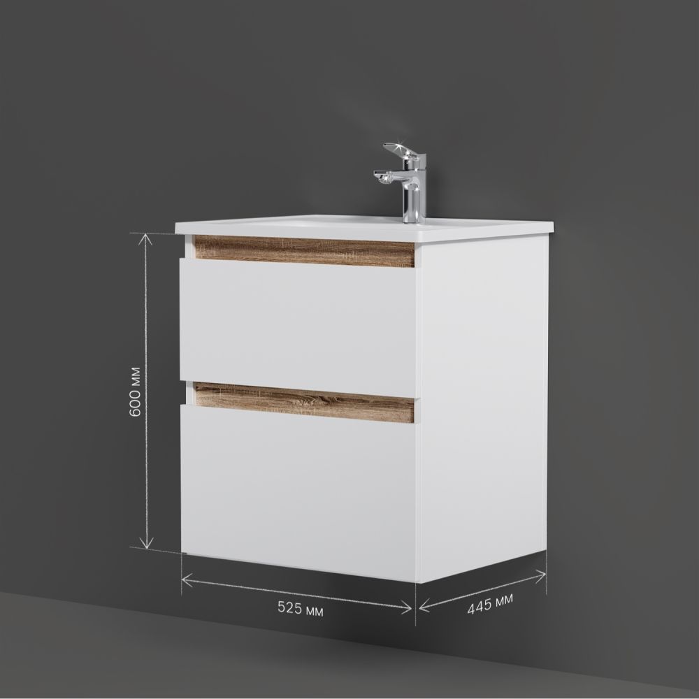 цвете Anthracite и имеет противоскользящее покрытие.? Встроенная керамическая раковина белоснежного цвета оснащена специальным бортиком для защиты от пролива воды за мебель.