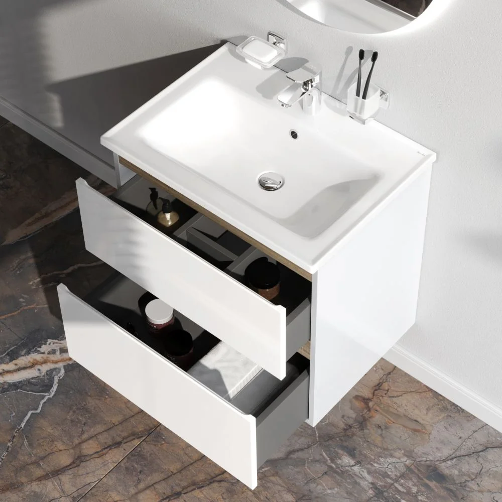 Функциональный органайзер в первом ящике позволит хранить необходимые косметические средства под рукой и в полном порядке. Внутреннее покрытие каждого ящика выполнено в современном