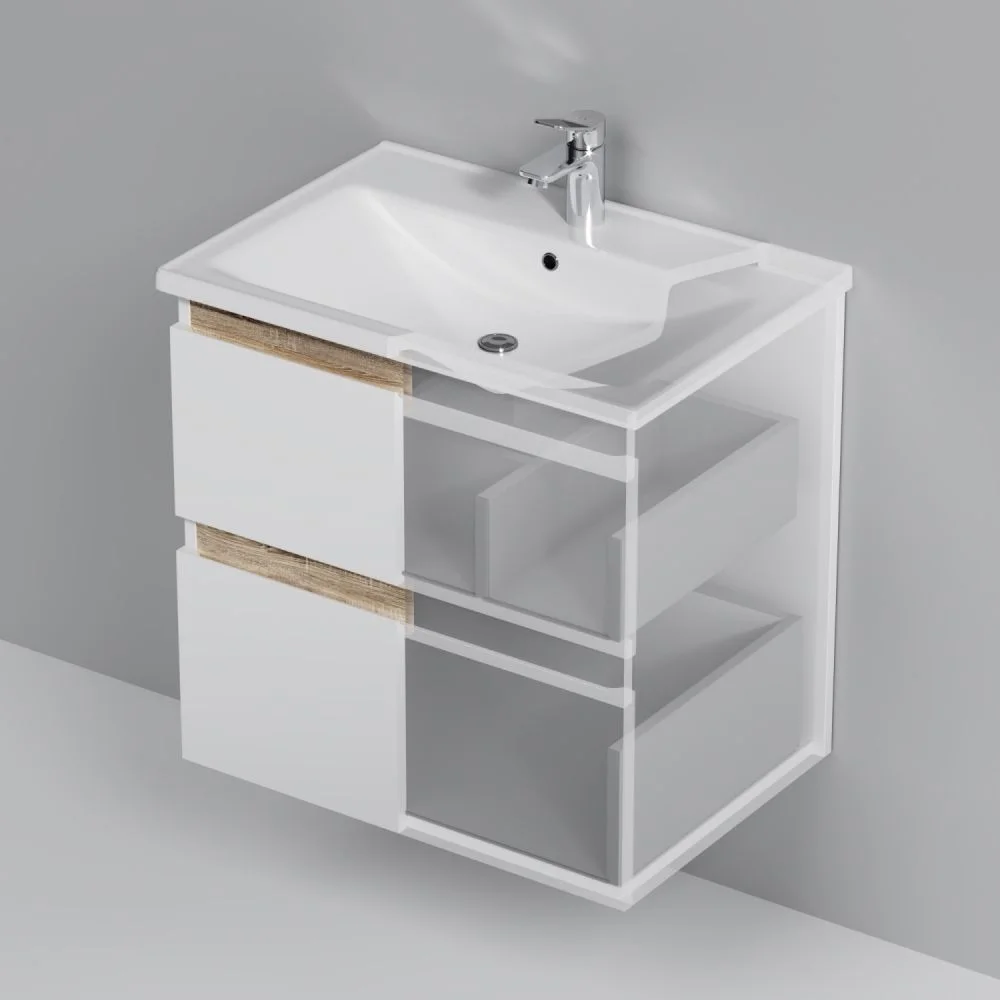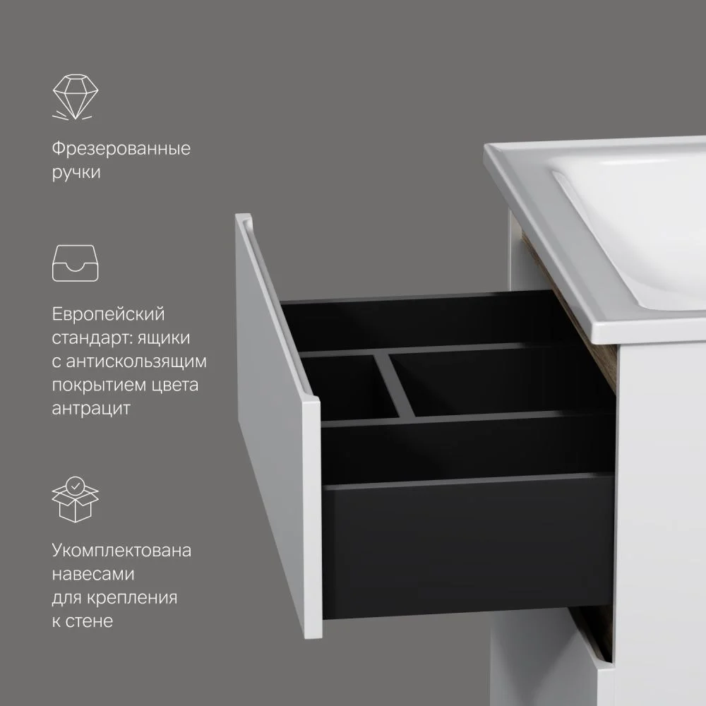 цвете Anthracite и имеет противоскользящее покрытие.? Встроенная керамическая раковина белоснежного цвета оснащена специальным бортиком для защиты от пролива воды за мебель.