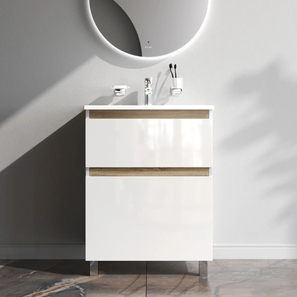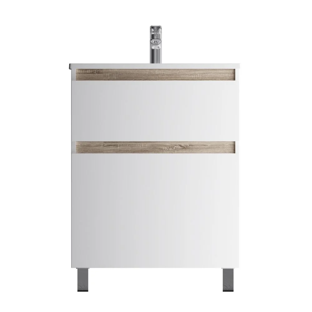 цвете Anthracite и имеет противоскользящее покрытие.? Встроенная керамическая раковина белоснежного цвета оснащена специальным бортиком для защиты от пролива воды за мебель.
