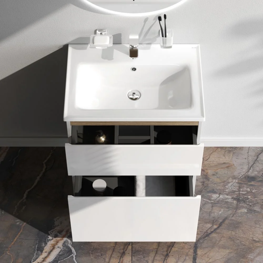 Функциональный органайзер в первом ящике позволит хранить необходимые косметические средства под рукой и в полном порядке. Внутреннее покрытие каждого ящика выполнено в современном