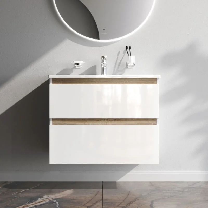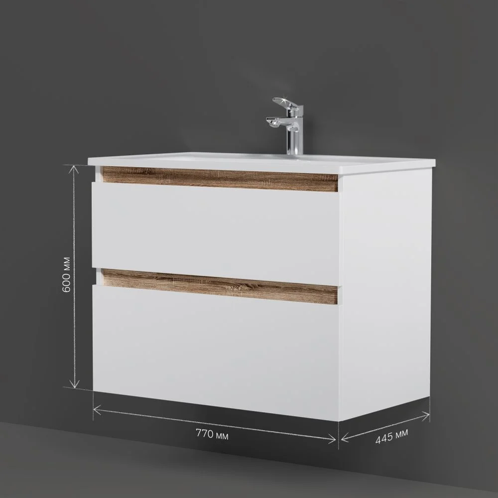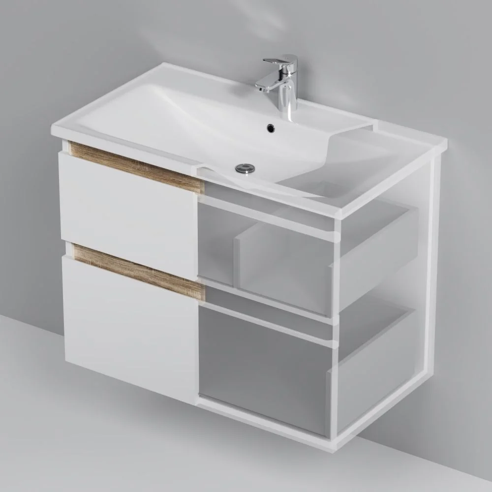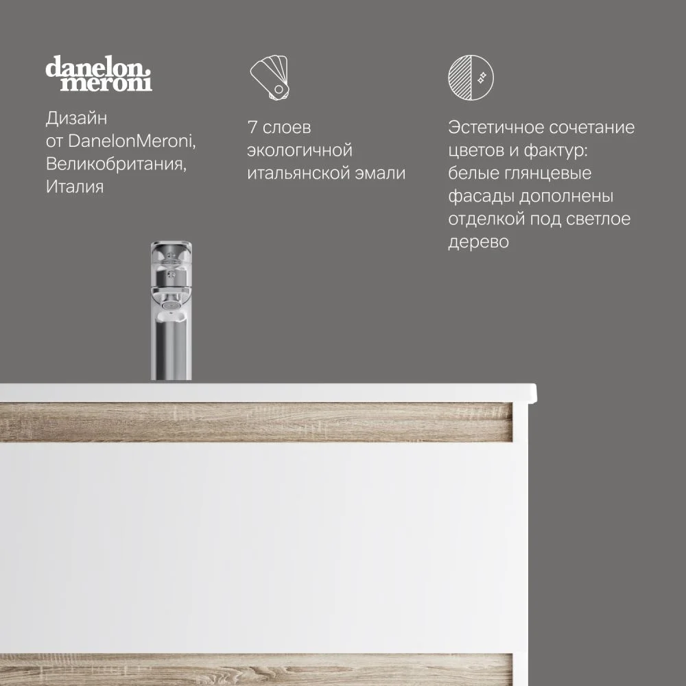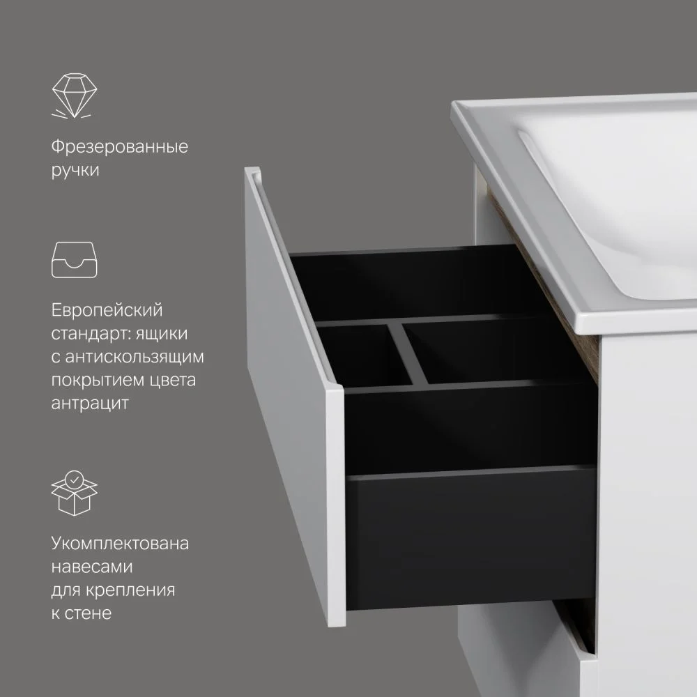 цвете Anthracite и имеет противоскользящее покрытие.? Встроенная керамическая раковина белоснежного цвета оснащена специальным бортиком для защиты от пролива воды за мебель.