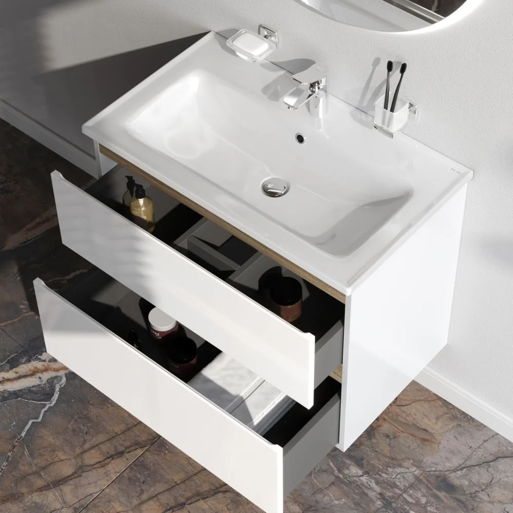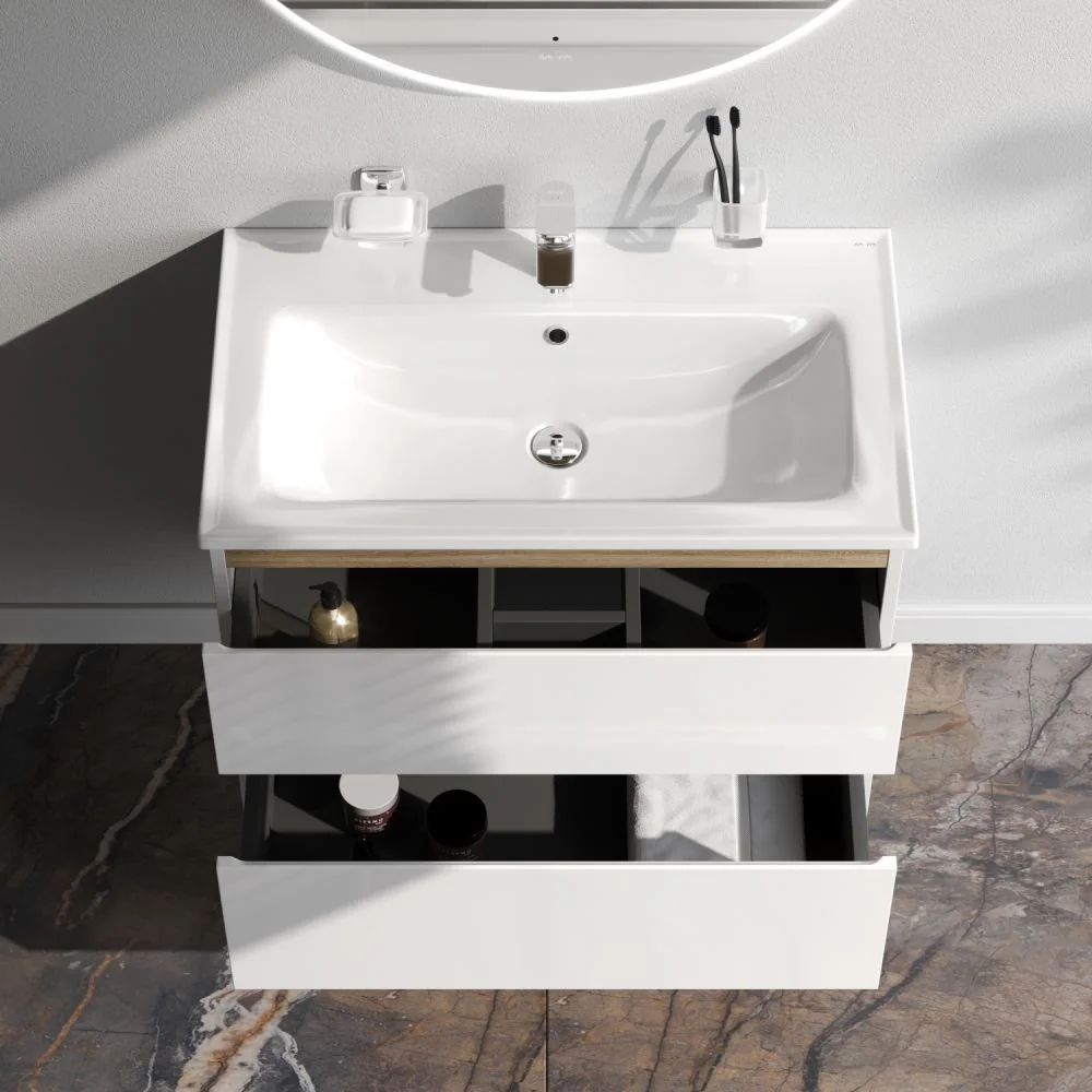 Функциональный органайзер в первом ящике позволит хранить необходимые косметические средства под рукой и в полном порядке. Внутреннее покрытие каждого ящика выполнено в современном