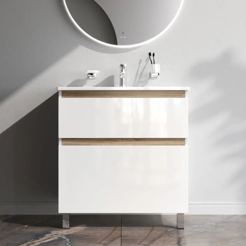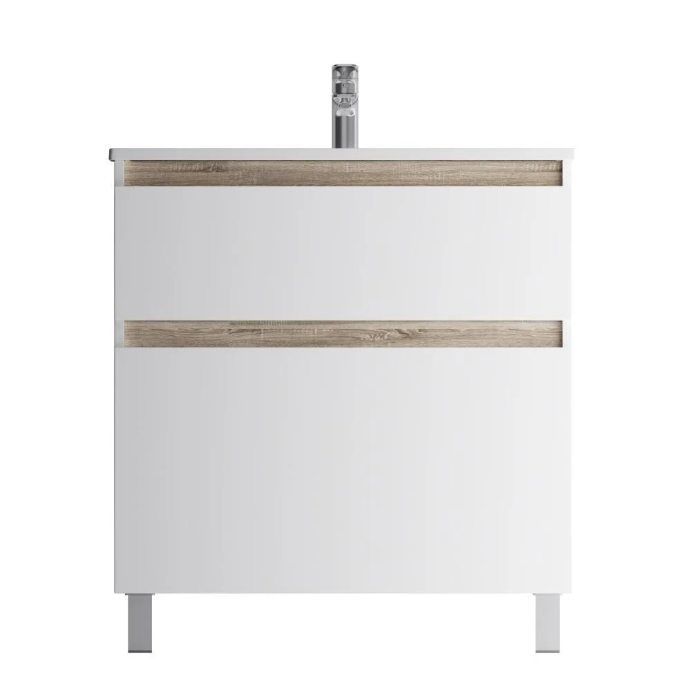цвете Anthracite и имеет противоскользящее покрытие.? Встроенная керамическая раковина белоснежного цвета оснащена специальным бортиком для защиты от пролива воды за мебель.