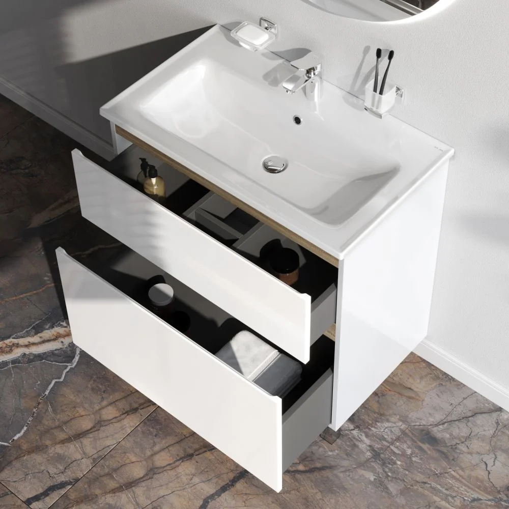 Функциональный органайзер в первом ящике позволит хранить необходимые косметические средства под рукой и в полном порядке. Внутреннее покрытие каждого ящика выполнено в современном
