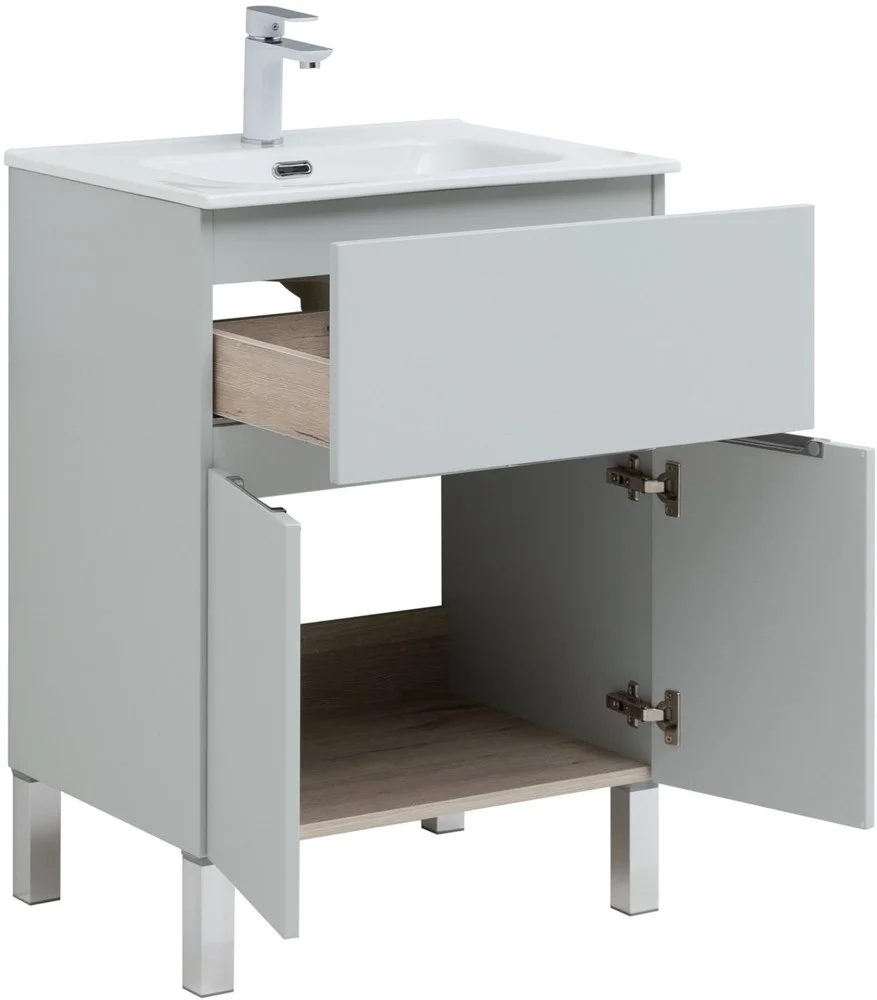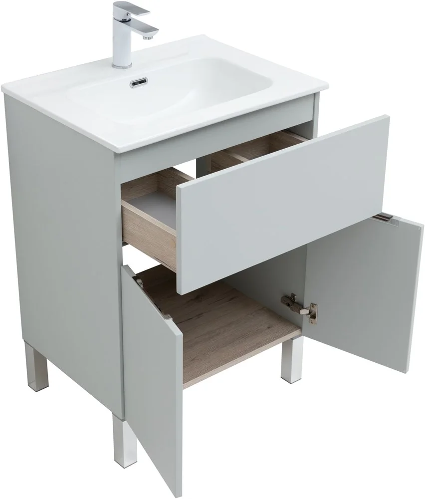 Тумба под раковину Aquanet Алвита New 60 1 ящик, 2 дверцы, серый 00277548
