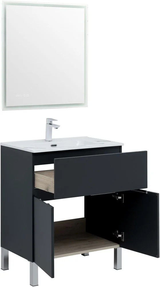 Тумба под раковину Aquanet Алвита new 70 1 ящик, 2 дверцы, антрацит 00303900