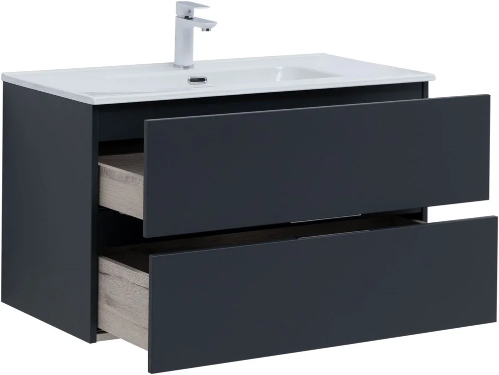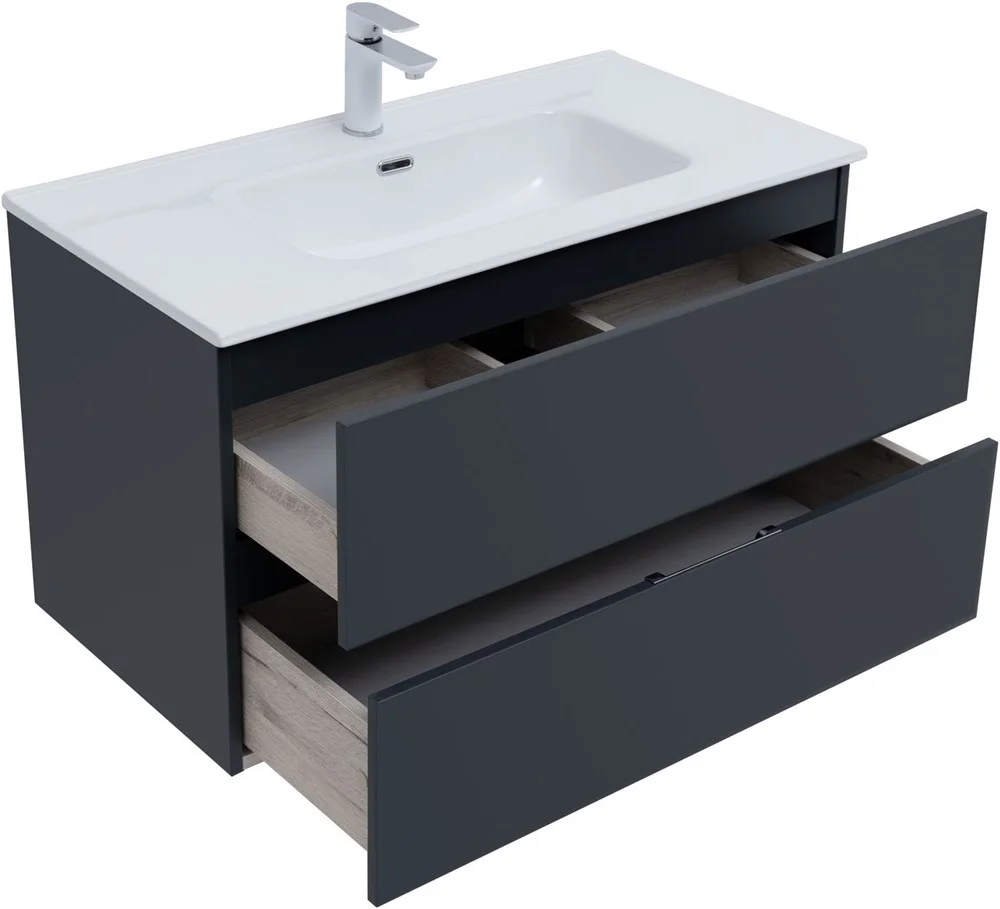 Тумба под раковину Aquanet Алвита New 90 2 ящика, антрацит 00303919