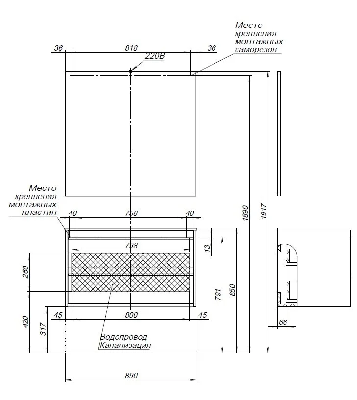 Тумба под раковину Aquanet Lino 90 Дуб Веллингтон 00253913