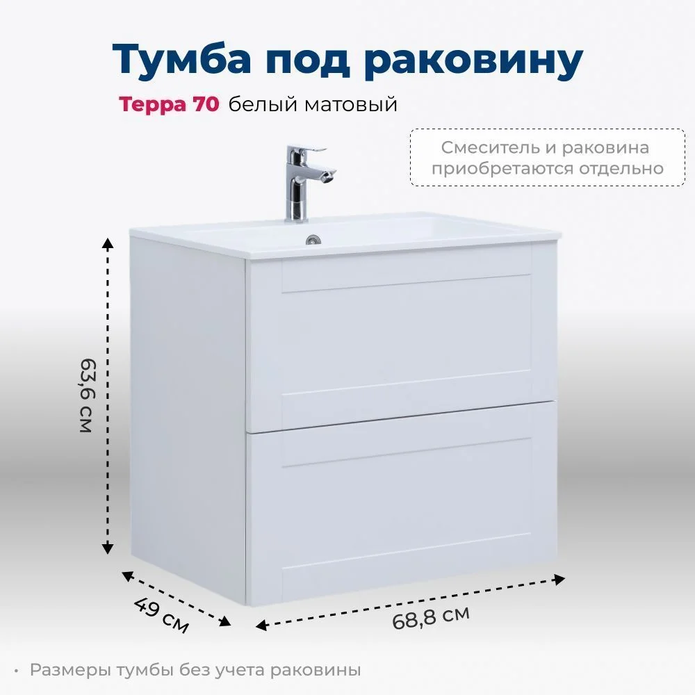 Тумба под раковину Aquanet Терра 70 белый матовый 00313233 подвесная