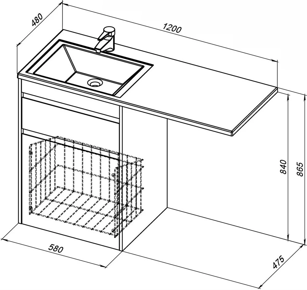 Тумба под раковину Aquanet Токио 58 белый (напольная, 1 ящик) 00239290