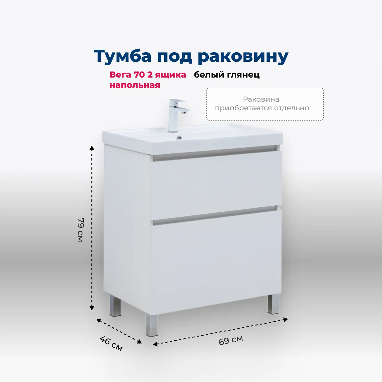 Тумба под раковину Aquanet Вега 70 00344122 напольная, белый глянец