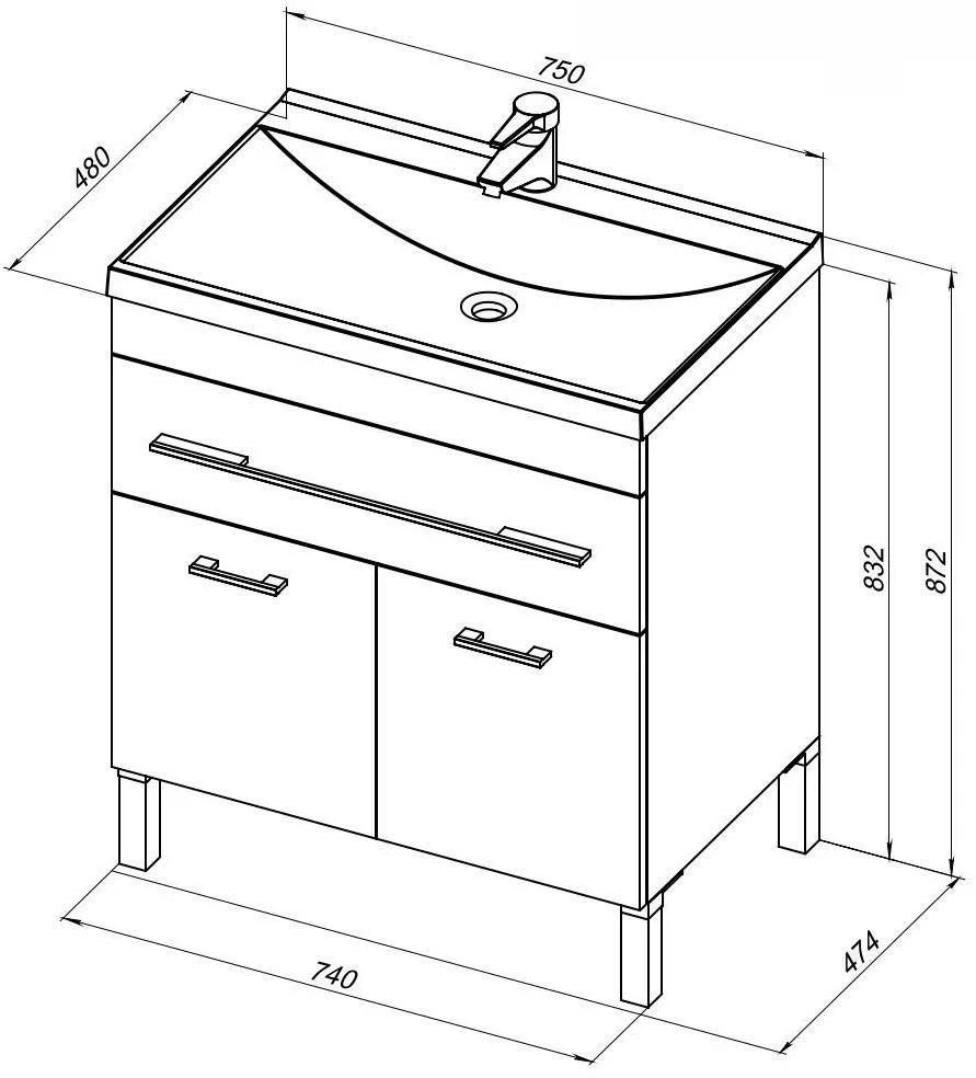 Тумба под раковину Aquanet Верона 75 белый (напольная 1 ящик 2 дверцы) 00182706