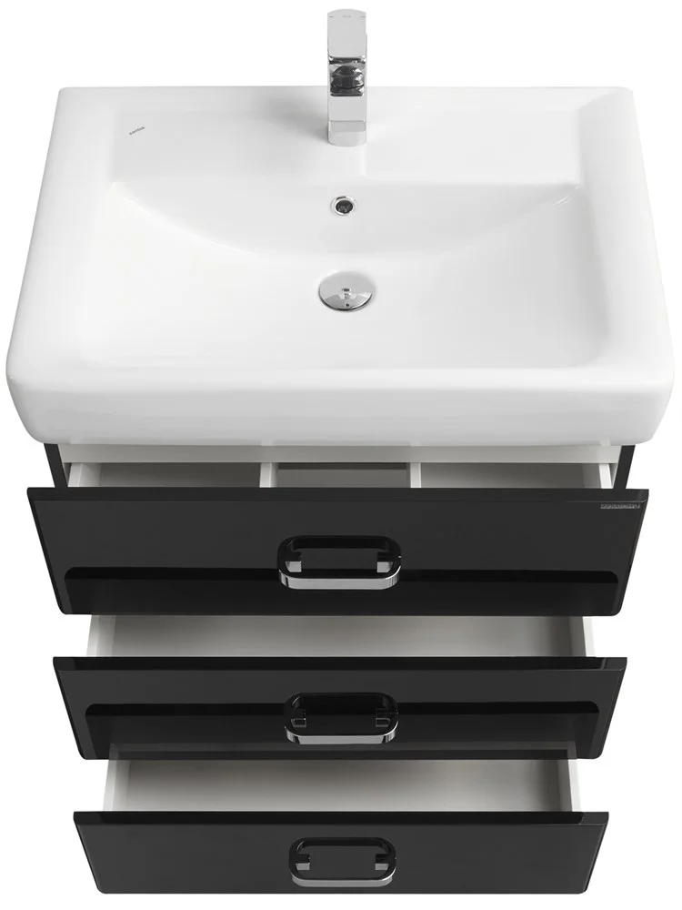 В этой модификации модели уже 3 вместительных ящика и изящные глянцевые опоры. Исполнение на ножках будет удобно в тех ванных комнатах, где стены недостаточно укреплены и есть сомнение, что они выдержат подвесную мебель. Тумбы АМЕРИНА М обладают всеми преимуществами тумб АМЕРИНА: направляющие нижнего крепежа обеспечивают жесткое и надежное крепление ящиков; плавный ход ящиков; встроенные в ящики доводчики, обеспечивающие бесшумное и плавное закрывание; дополнительно организовано нижнее подключение труб водоснабжения и канализации.