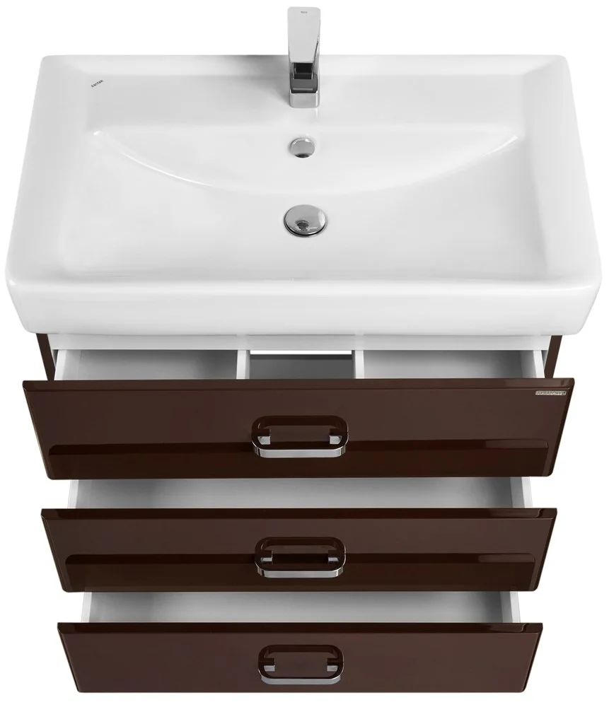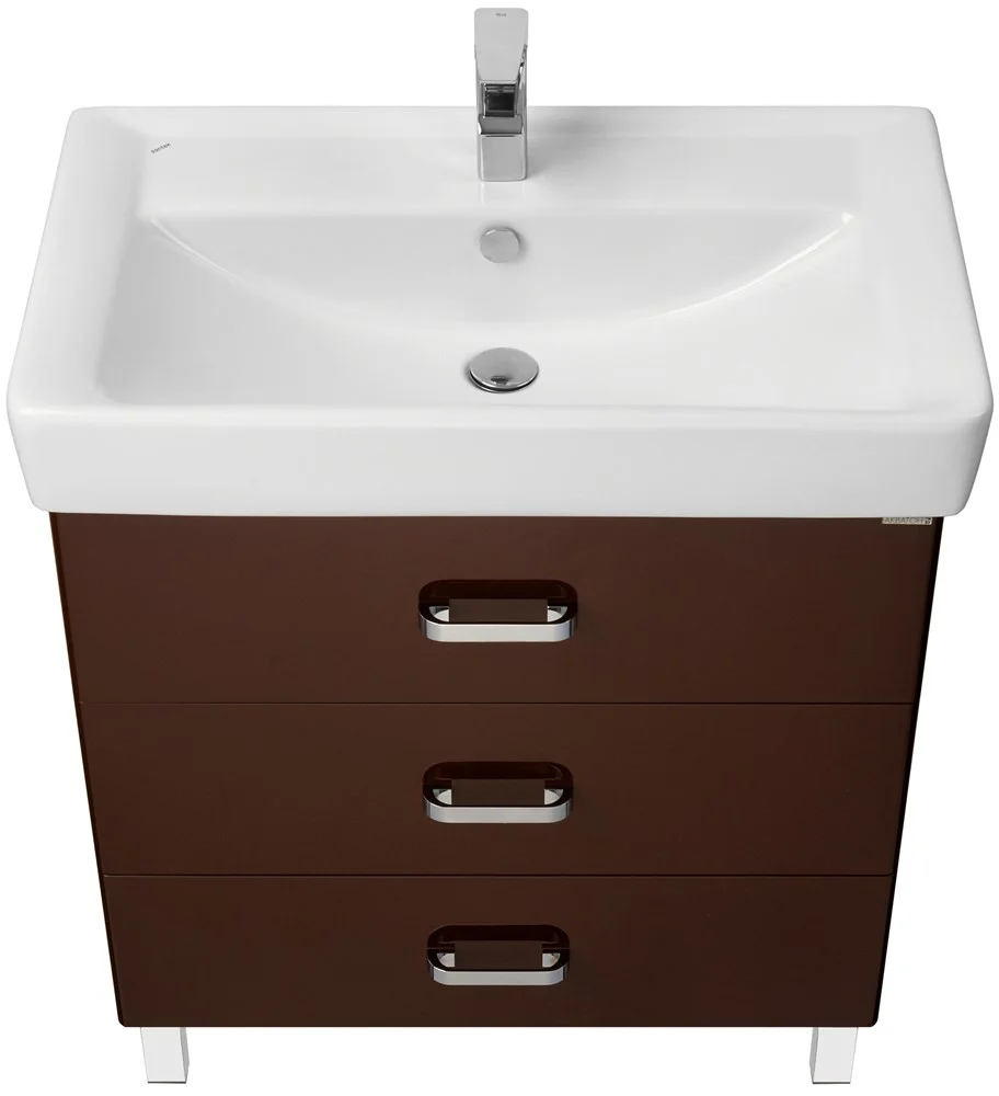 В этой модификации модели уже 3 вместительных ящика и изящные глянцевые опоры. Исполнение на ножках будет удобно в тех ванных комнатах, где стены недостаточно укреплены и есть сомнение, что они выдержат подвесную мебель. Тумбы АМЕРИНА М обладают всеми преимуществами тумб АМЕРИНА: направляющие нижнего крепежа обеспечивают жесткое и надежное крепление ящиков; плавный ход ящиков; встроенные в ящики доводчики, обеспечивающие бесшумное и плавное закрывание; дополнительно организовано нижнее подключение труб водоснабжения и канализации.