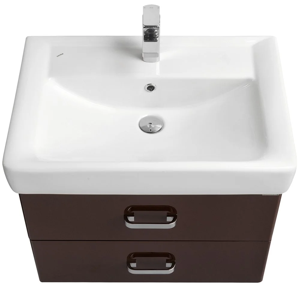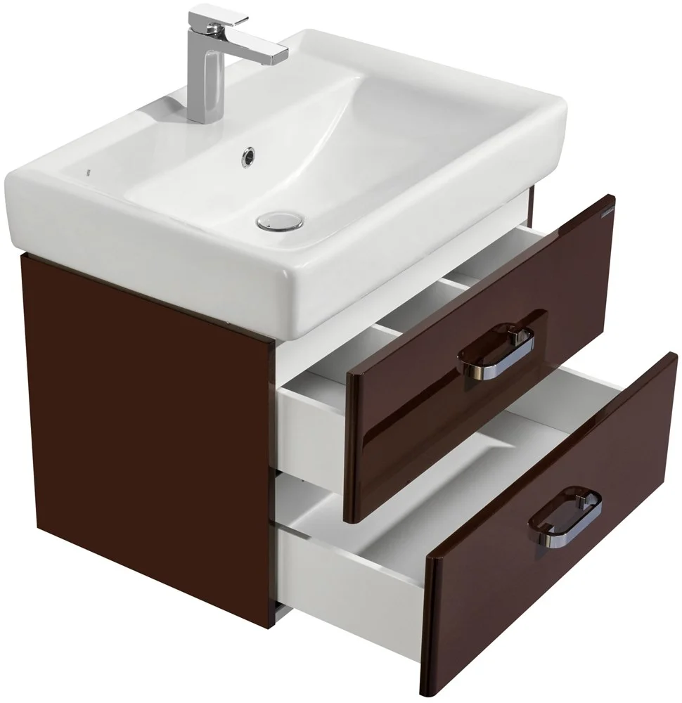 Стильная лаконичная модель, укомплектованная прямоугольной керамической раковиной с широкой удобной чашей. В тумбе имеются два ящика, изготовленные из декоративной влагостойкой ДСП. Нижний ящик тумбы - широкий и вместительный - предназначен для крупных предметов, а в верхнем имеется специальная организация пространства, позволяющая хранить мелкие вещи.