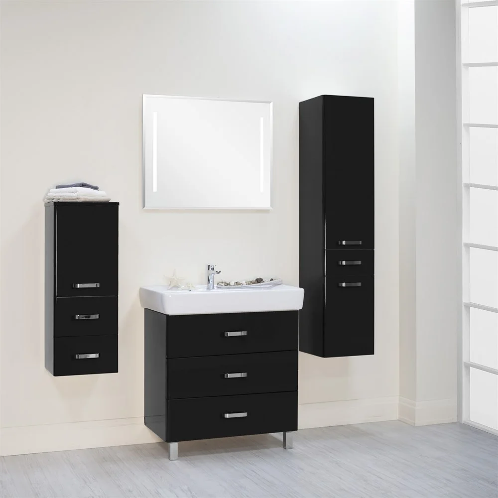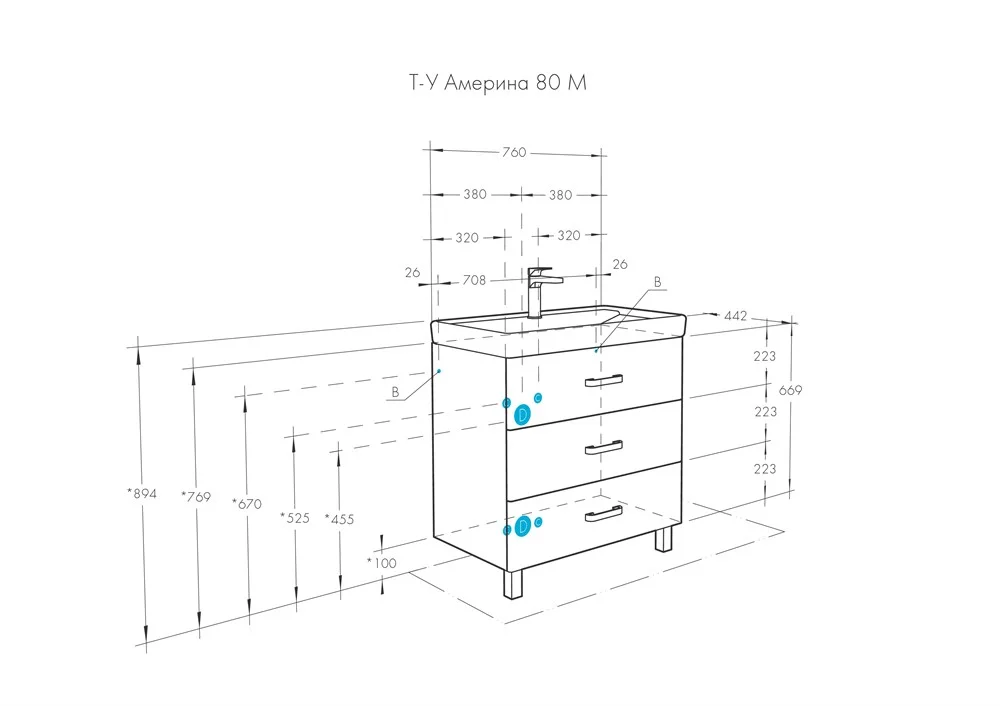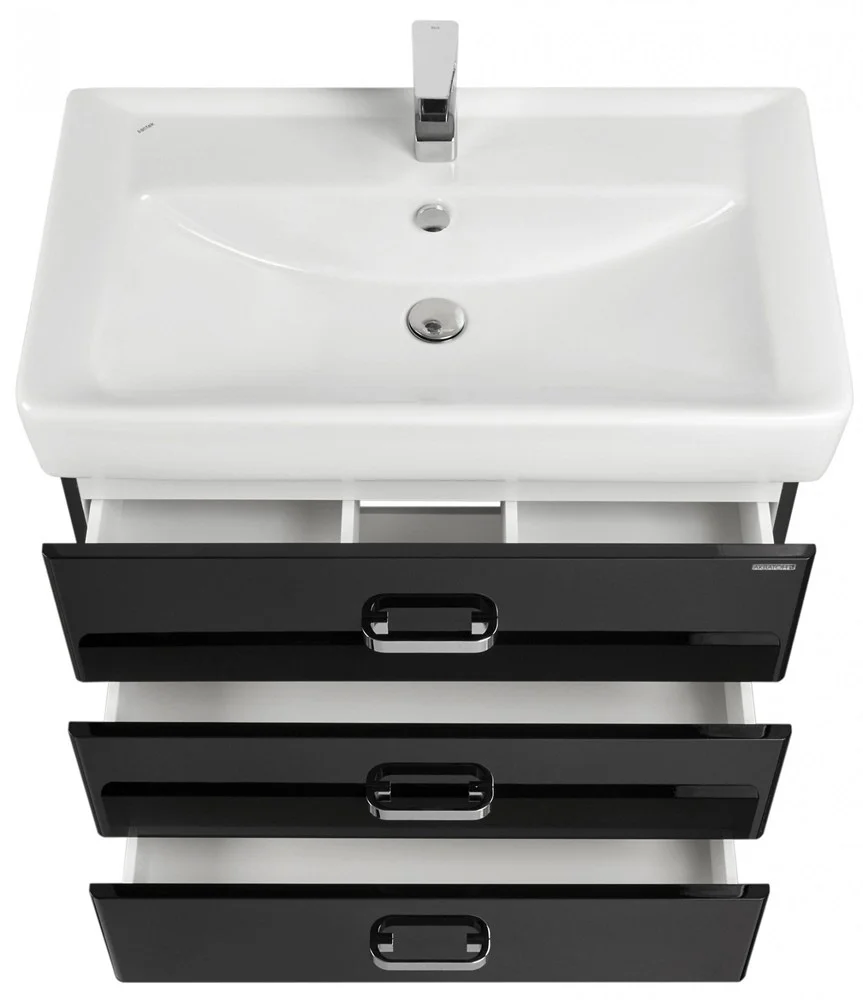 В этой модификации модели уже 3 вместительных ящика и изящные глянцевые опоры. Исполнение на ножках будет удобно в тех ванных комнатах, где стены недостаточно укреплены и есть сомнение, что они выдержат подвесную мебель. Тумбы АМЕРИНА М обладают всеми преимуществами тумб АМЕРИНА: направляющие нижнего крепежа обеспечивают жесткое и надежное крепление ящиков; плавный ход ящиков; встроенные в ящики доводчики, обеспечивающие бесшумное и плавное закрывание; дополнительно организовано нижнее подключение труб водоснабжения и канализации.