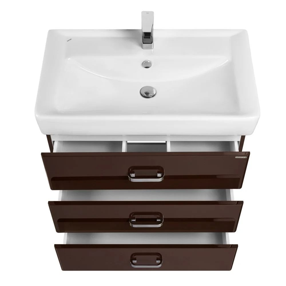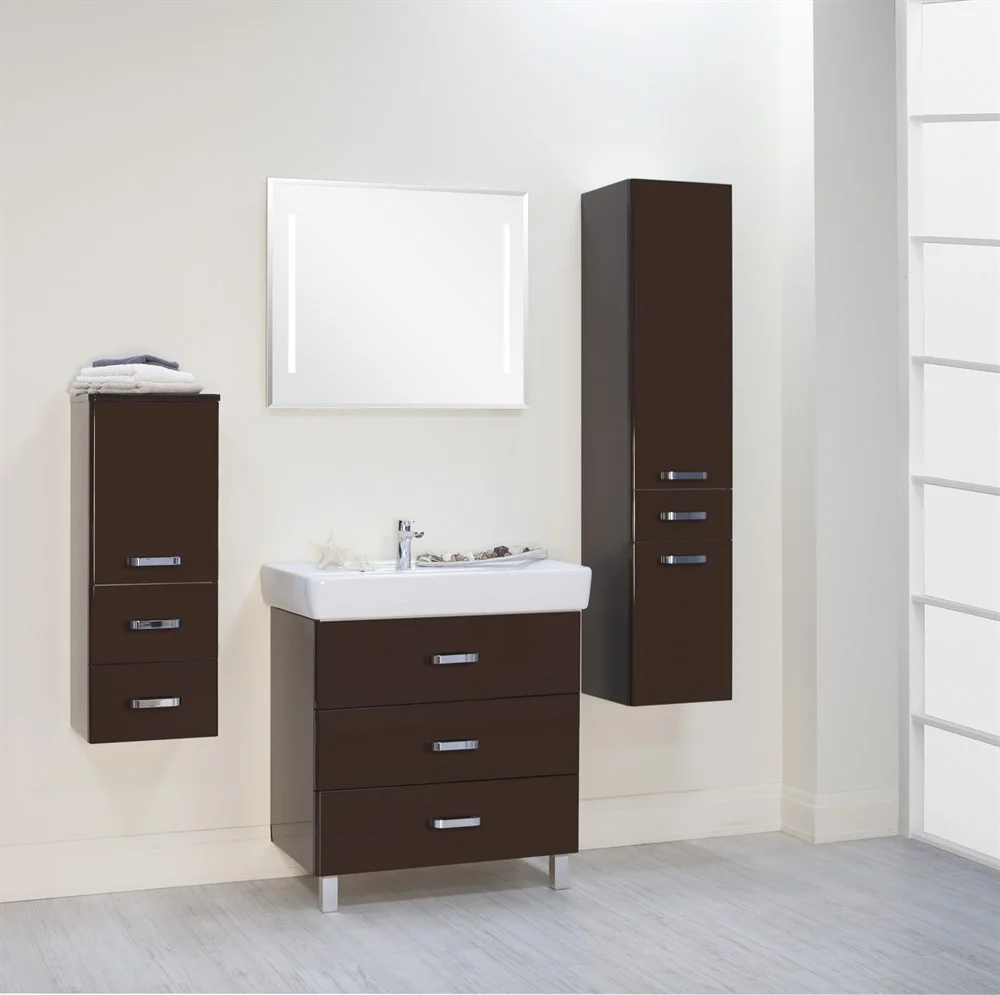 В этой модификации модели уже 3 вместительных ящика и изящные глянцевые опоры. Исполнение на ножках будет удобно в тех ванных комнатах, где стены недостаточно укреплены и есть сомнение, что они выдержат подвесную мебель. Тумбы АМЕРИНА М обладают всеми преимуществами тумб АМЕРИНА: направляющие нижнего крепежа обеспечивают жесткое и надежное крепление ящиков; плавный ход ящиков; встроенные в ящики доводчики, обеспечивающие бесшумное и плавное закрывание; дополнительно организовано нижнее подключение труб водоснабжения и канализации.