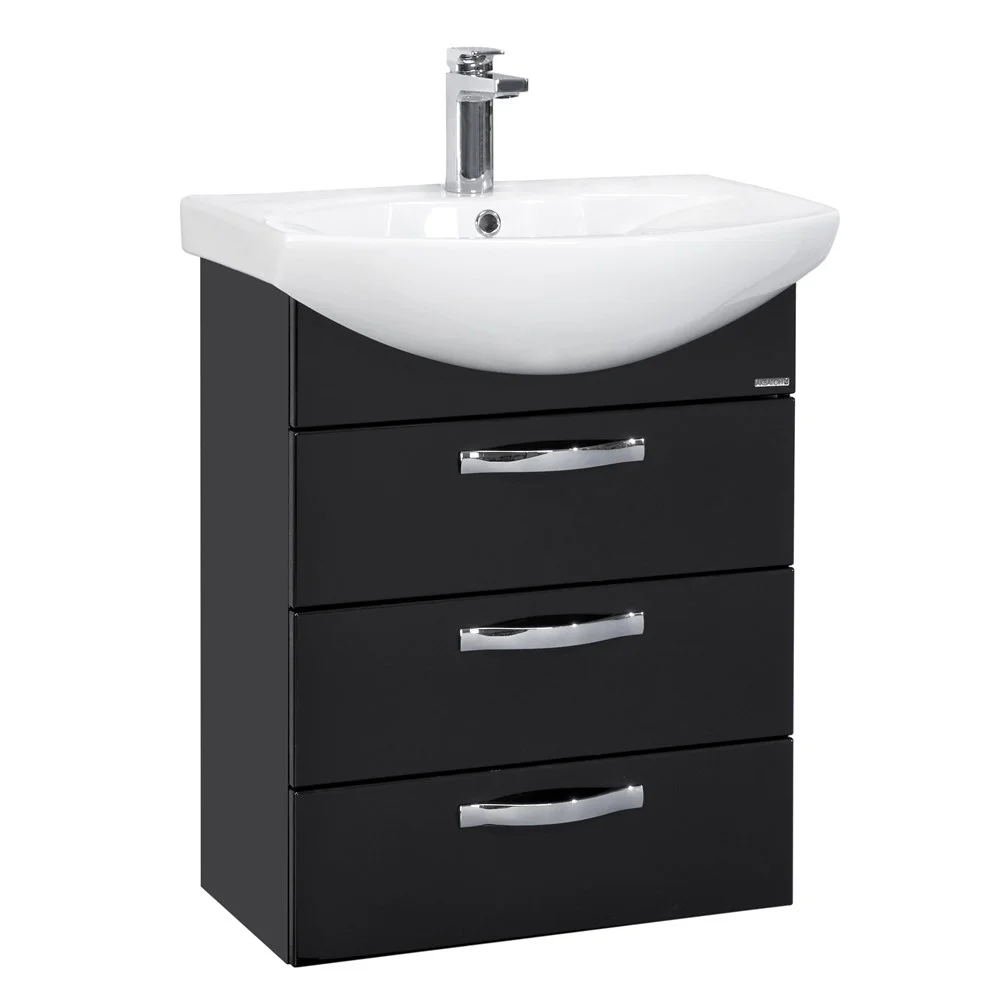 Тумба Ария 50 H в современном стиле выполнена из влагостойкой ламинированной плиты, высококачественной MDF и окрашена с высокой степенью глянца полиэфирной краской ультрафиолетового отверждения. Данный способ окрашивания обеспечивает изделию привлекательный внешний вид, а также износостойкость и долговечность. Тумба содержит три ящика и комплектуется белоснежной раковиной от бренда Santek.