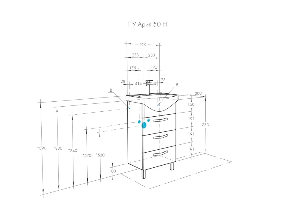 Тумба Ария 50 H в современном стиле выполнена из влагостойкой ламинированной плиты, высококачественной MDF и окрашена с высокой степенью глянца полиэфирной краской ультрафиолетового отверждения. Данный способ окрашивания обеспечивает изделию привлекательный внешний вид, а также износостойкость и долговечность. Тумба содержит три ящика и комплектуется белоснежной раковиной от бренда Santek.