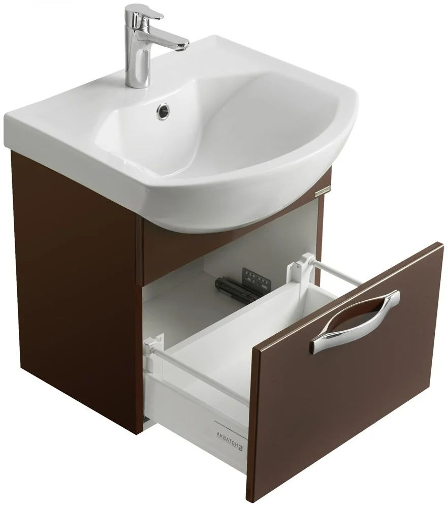 Тумба Ария 50 в современном стиле выполнена из влагостойкой ламинированной плиты, высококачественной MDF и окрашена с высокой степенью глянца полиэфирной краской ультрафиолетового отверждения. Данный способ окрашивания обеспечивает изделию привлекательный внешний вид, а также износостойкость и долговечность. Тумба содержит один ящик и комплектуется белоснежной раковиной от бренда Santek.